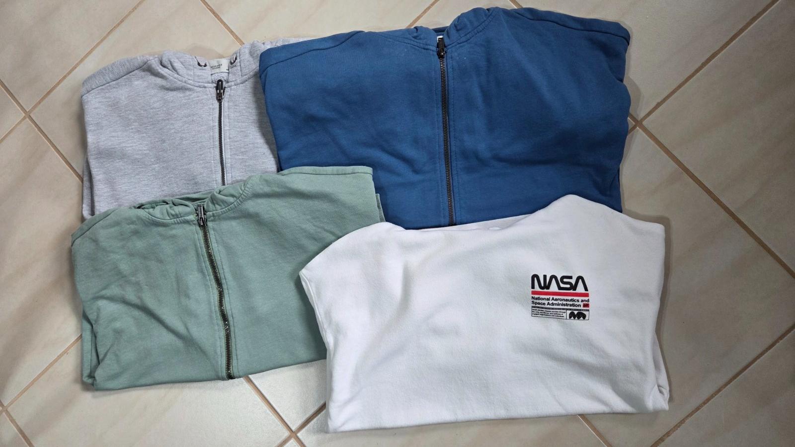 Mikina Reserved, oteplena. Nosena, jemne zmolky, inak OK, velkost pisana 158, sadne na 158/164. Miery na fotkach.