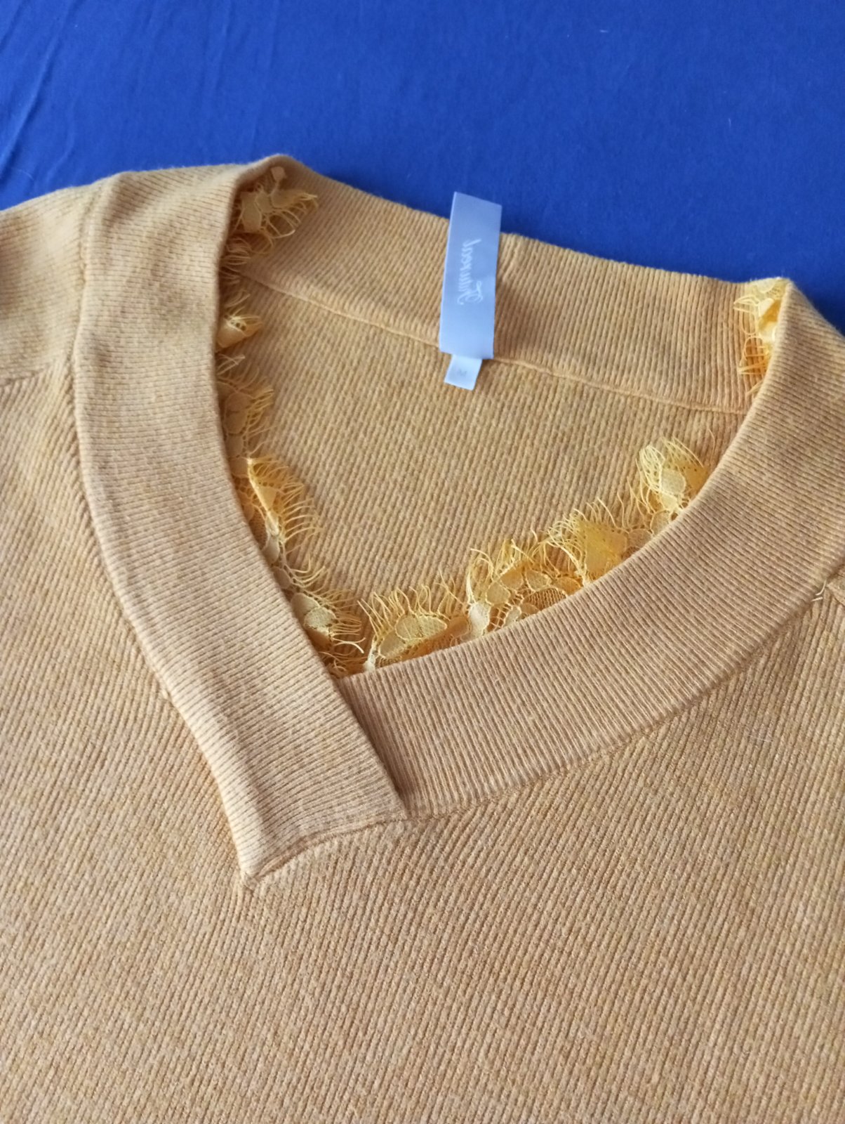 Sveter Reseeved, malo noseny (asi 3x obleceny), bez poskodeni, velkost pisana S ale je vacsi, skor M, krasna vyrazna zlta farba.