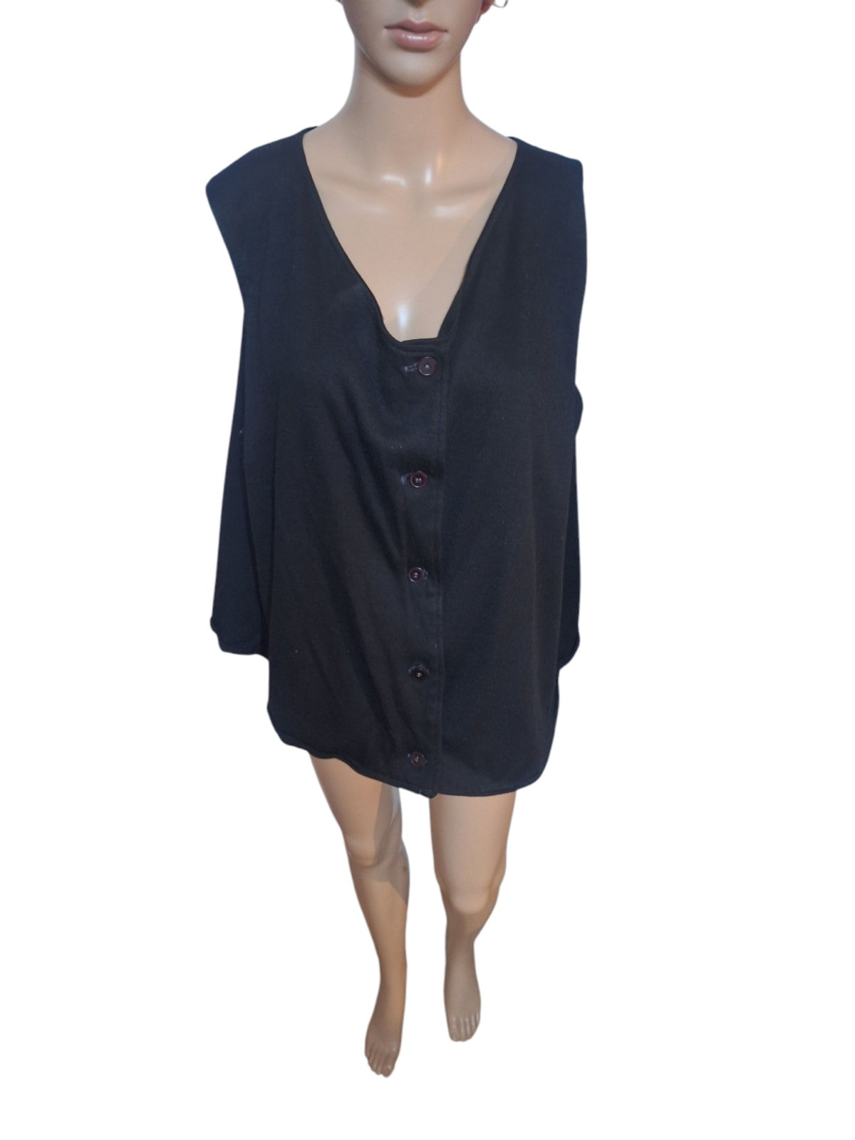 Dámska vesta na zapínanie. Je mierne elastická. Dĺžka je 60cm,obvod hrudníka je 140cm a obvod pása je 140cm. kód 858