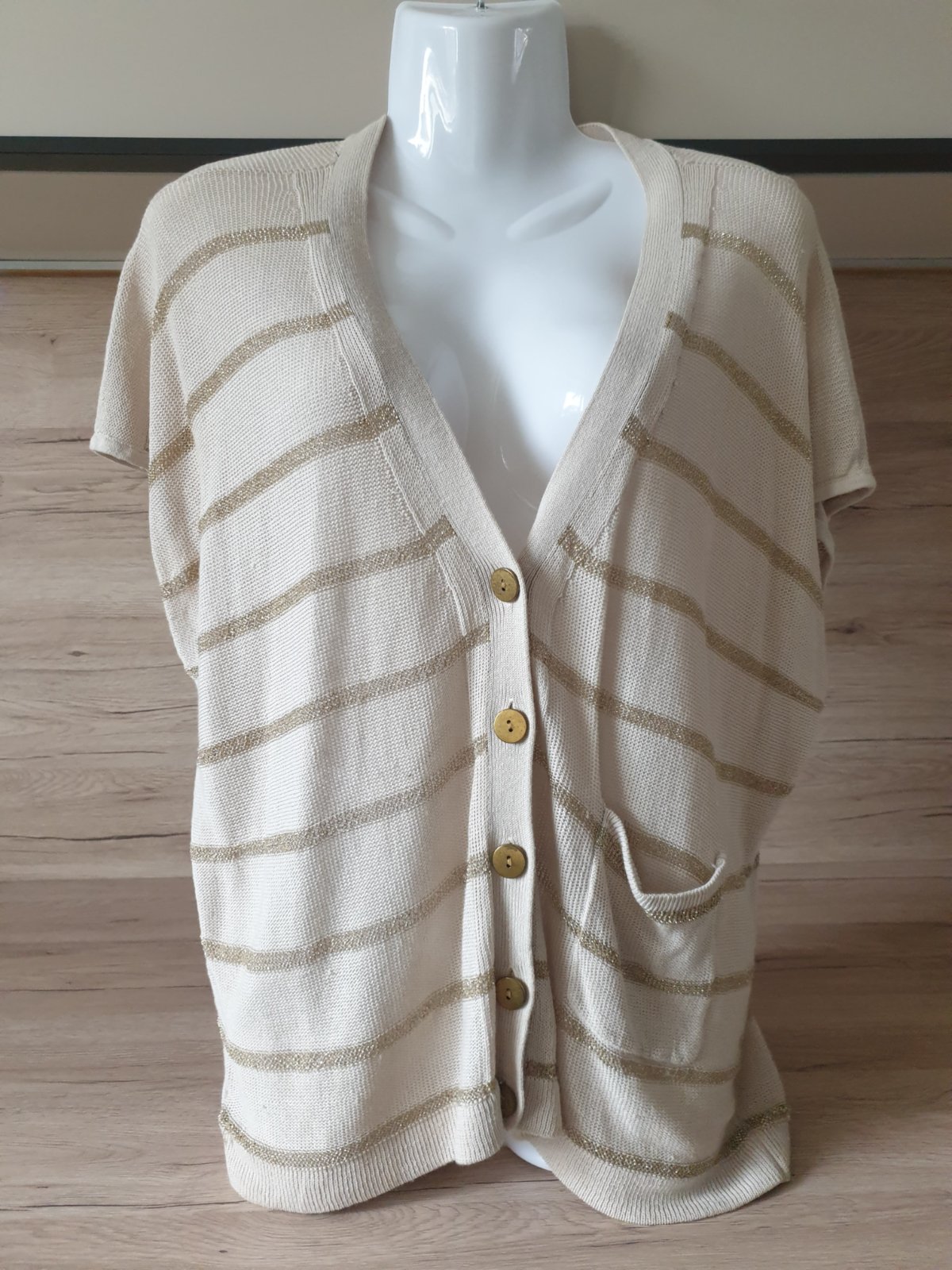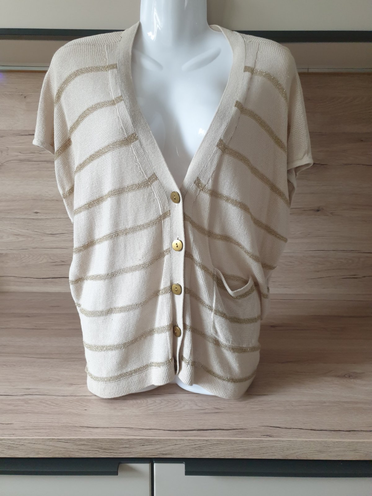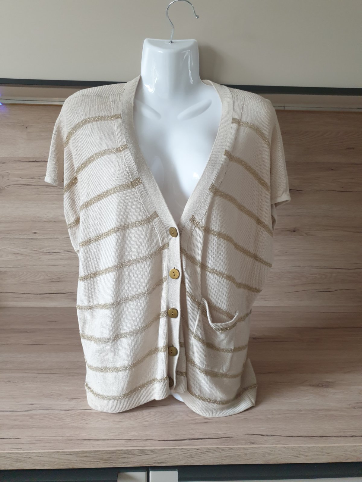 Pletená vesta H&M 🖊️ Cena : 3,40 € 🖊️ Veľkosť : S 🖊️ Materiál : 100 % akryl 🖊️ Rozmery : celková dĺžka : 50 cm, šírka pod pazuchami : 2x 37 cm