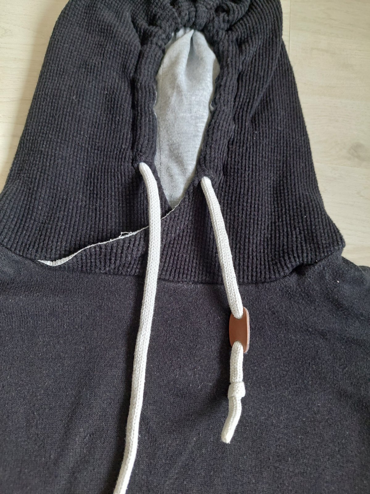 Oblečená pár krát,na kapucne kde sú šnúrky,chýbajú tie kovové pliešky