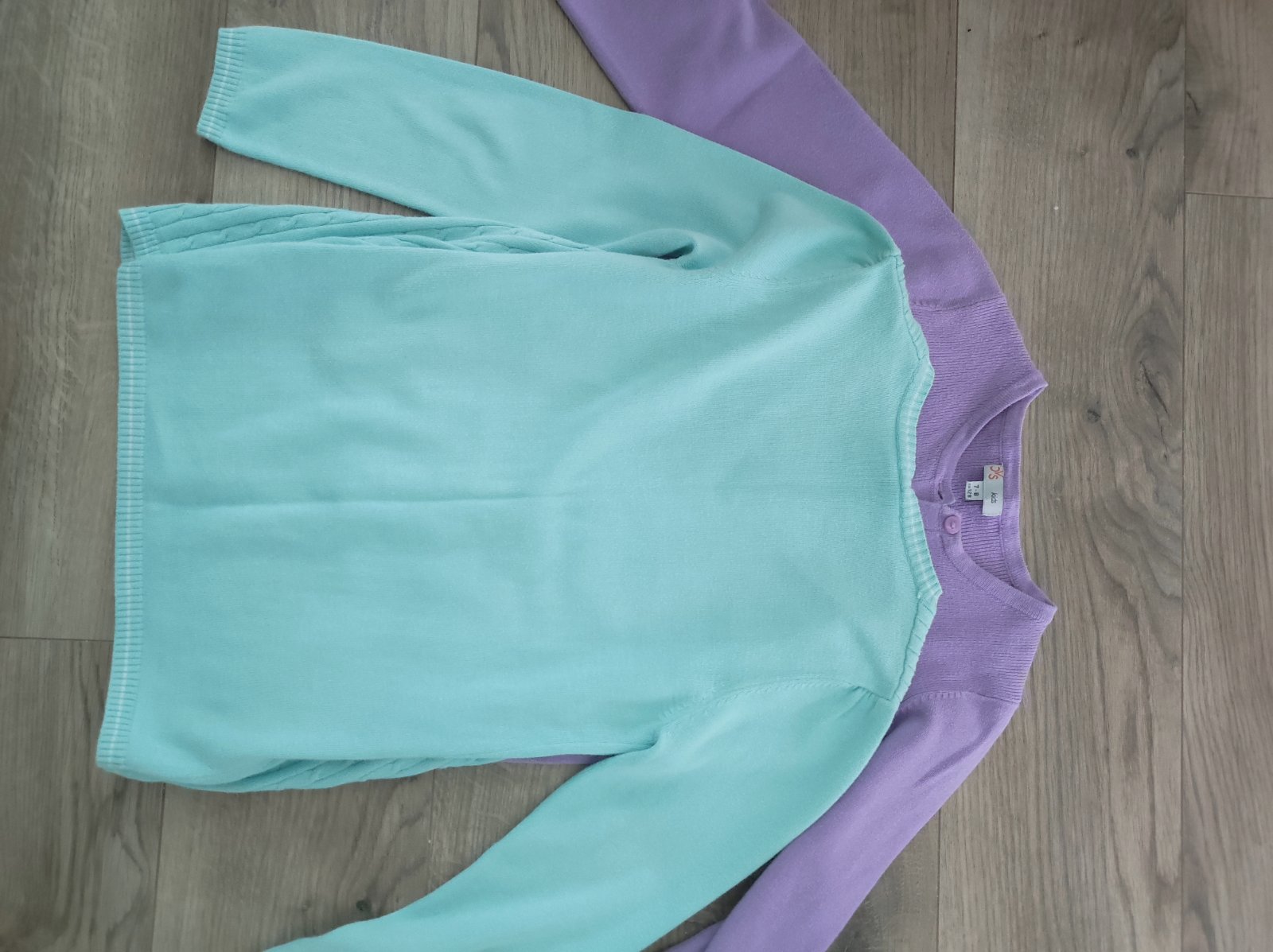 Tyrkysovy bezchybný, k nemu fialový zn. OVS, pridám zdarma, má mini zmolky. Rovnaká veľkosť. Rozmery na foto.