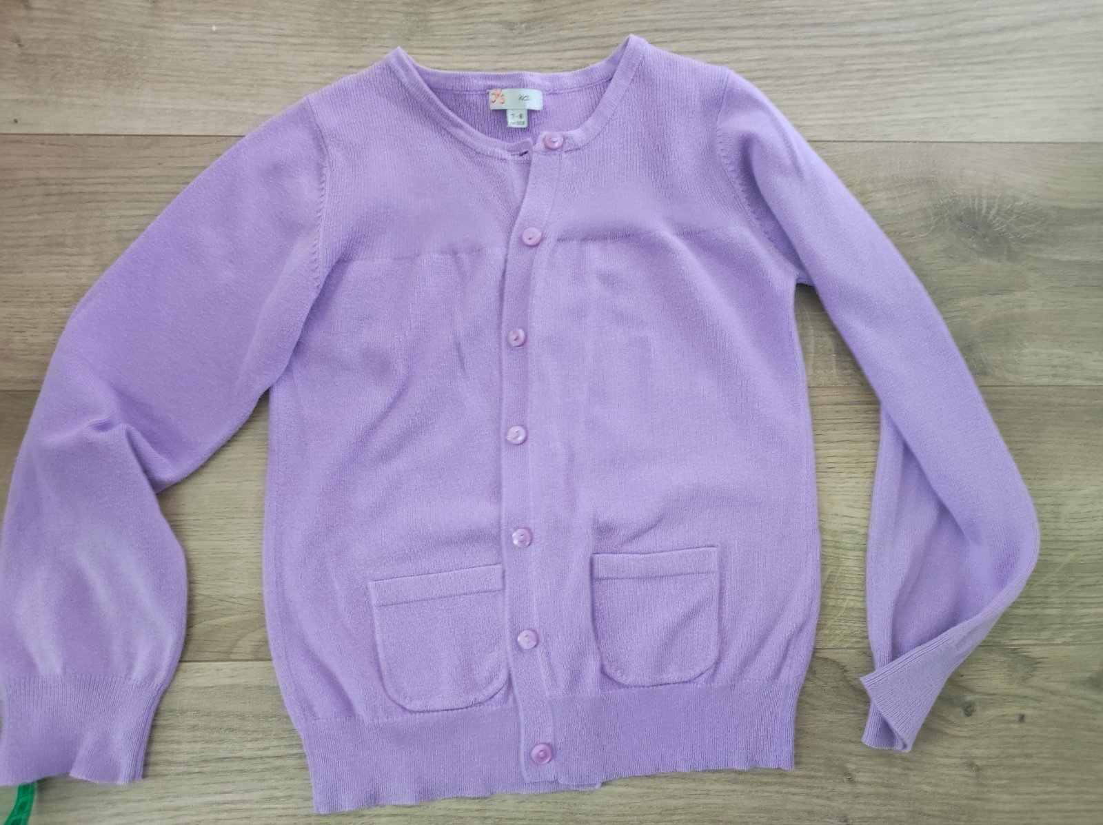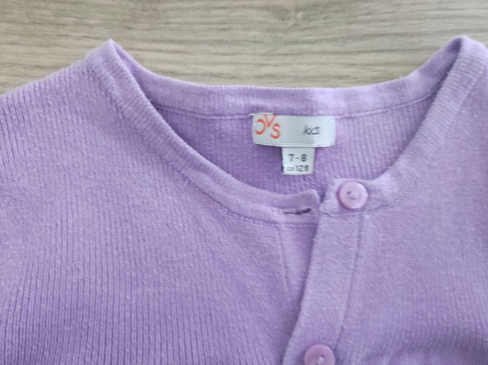 Športový pulóvrik pre slečnu vo veku 7-8 rokov a výšky okolo 130 cm, čistá bavlna. Jemný vzor fialových kvietkov, na krku vzadu krátky zips pre ľahšie obliekanie a pre parádu. Výborne vyzerá s rifl...