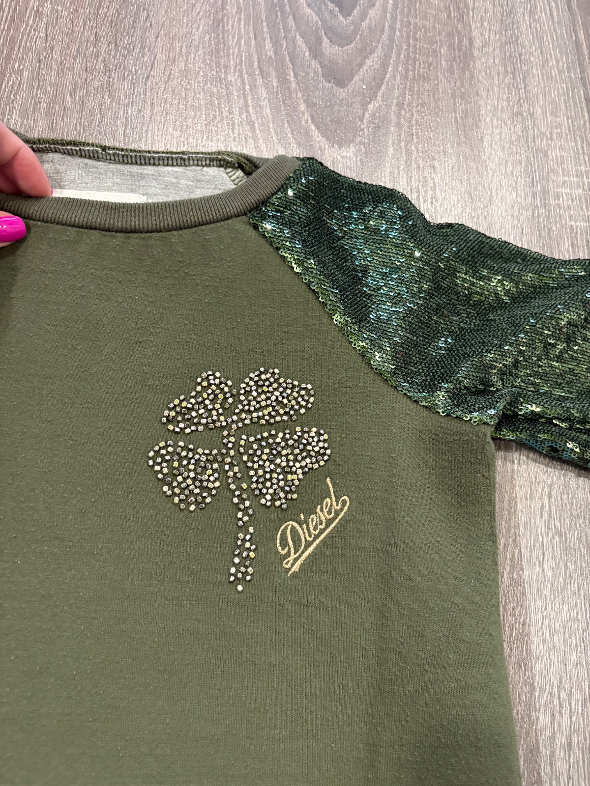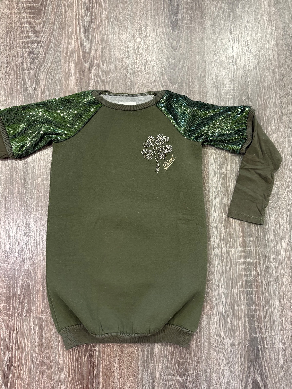 05.Diesel štylova dievcenska predlzena mikina vo velkosti 10 rokov,super stav jedine na niektorych miestach mini žmolky,inak super stav.Dlzka je 66cm,dlzka rukava od krku je 56cm a sirka v podpazusi je od 40x2cm do 46x2cm