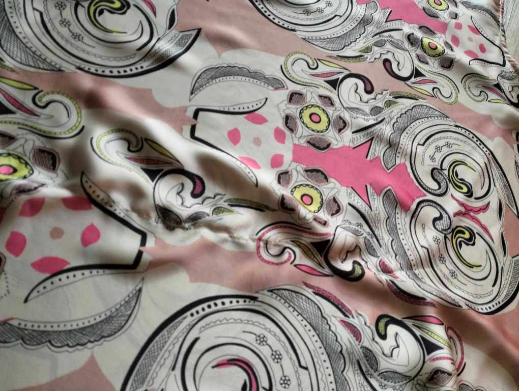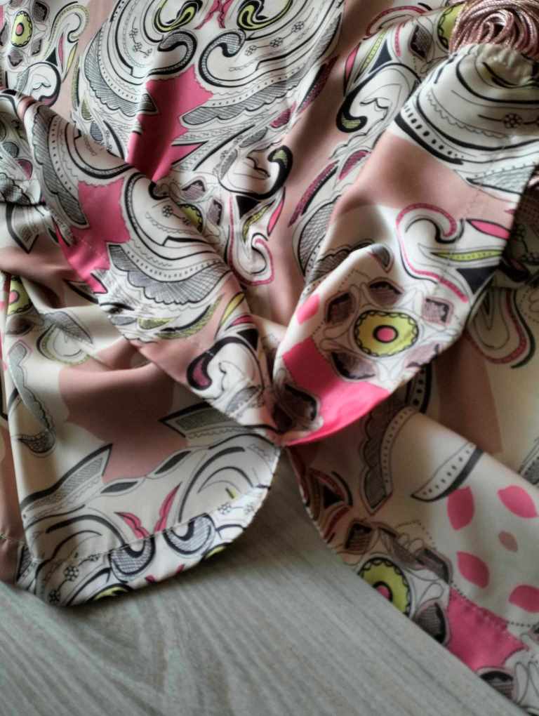 Farebná kombinácia je taká marhuľková, béžová, ružová so zaujímavým vzorom.