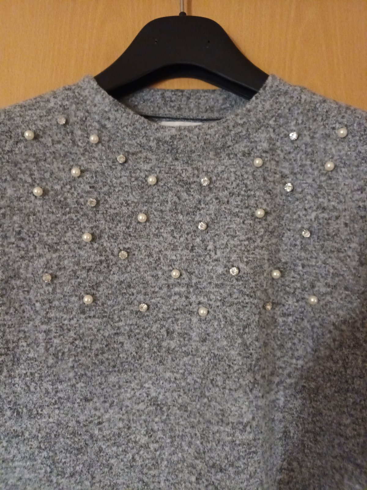 Jemny makucky zensky pulovrik, s perlickami, vhodny aj k sukni. Velkost M-L. Minimalne noseny, nevynosim, kedze som skoncila na ID a do prace ho uz nepotrebujem.