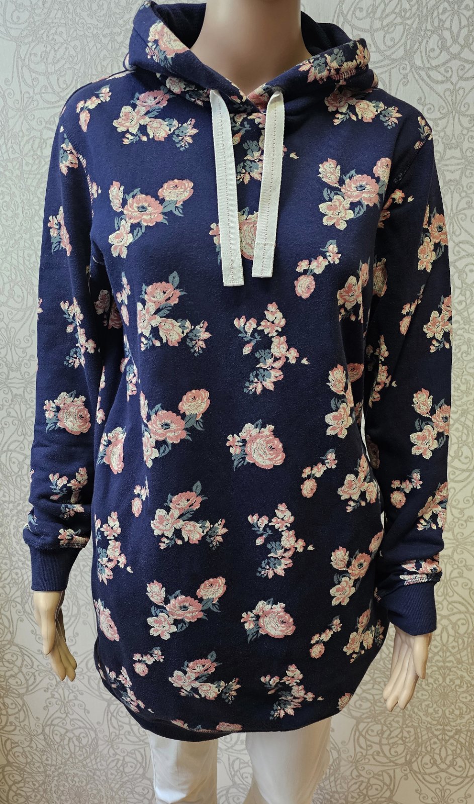 Výborný stav. Dĺžka 96 cm, dĺžka rukáva 75 cm, šírka v hrudníku 49x2 cm. Materiál je príjemný mäkký a zvnútra hrejivý. 70% bavlna, 30% polyamid.