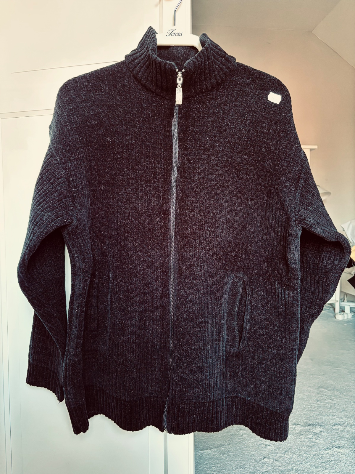 Teplý sveter s vreckami, zapínanie na zips