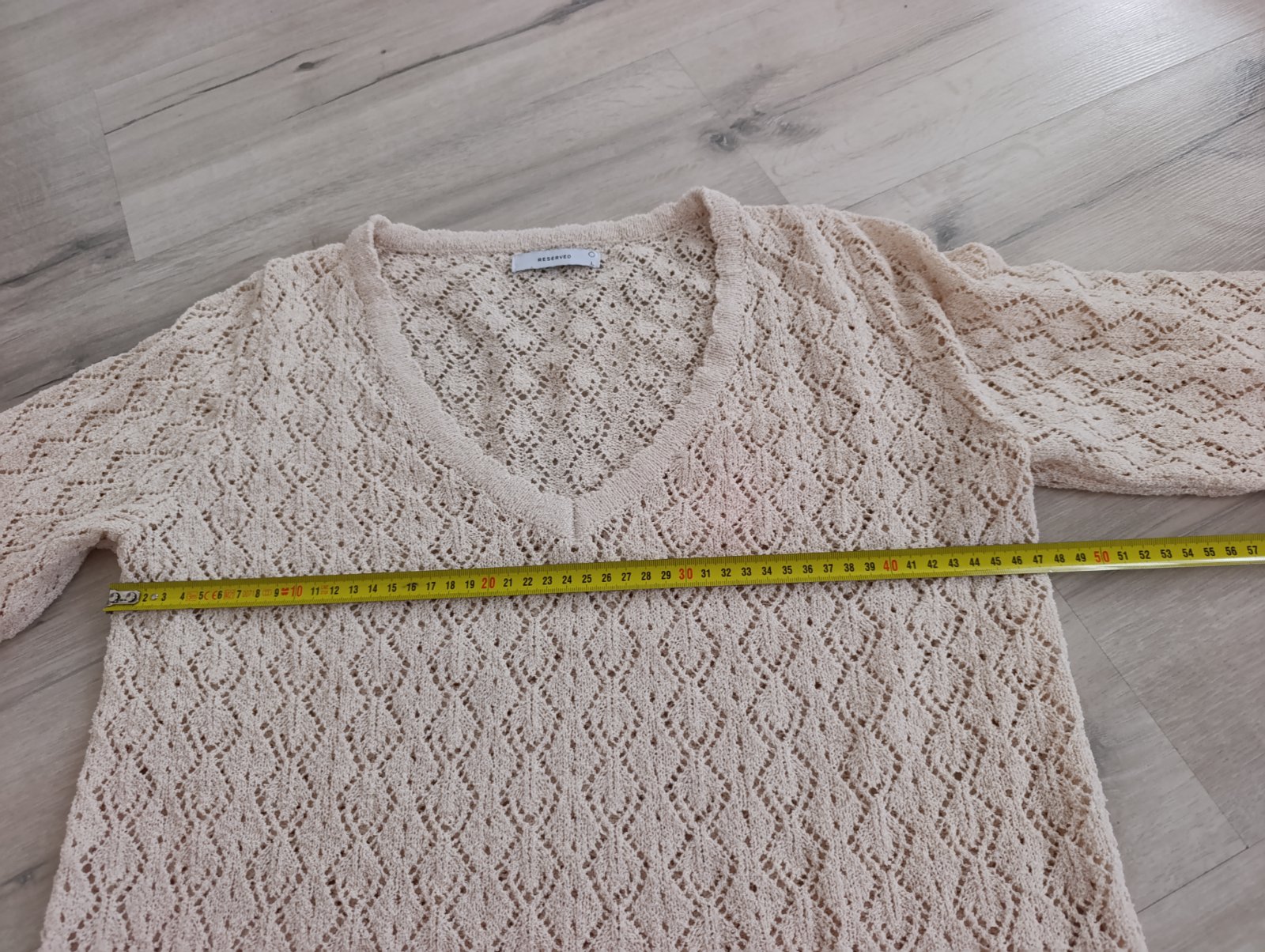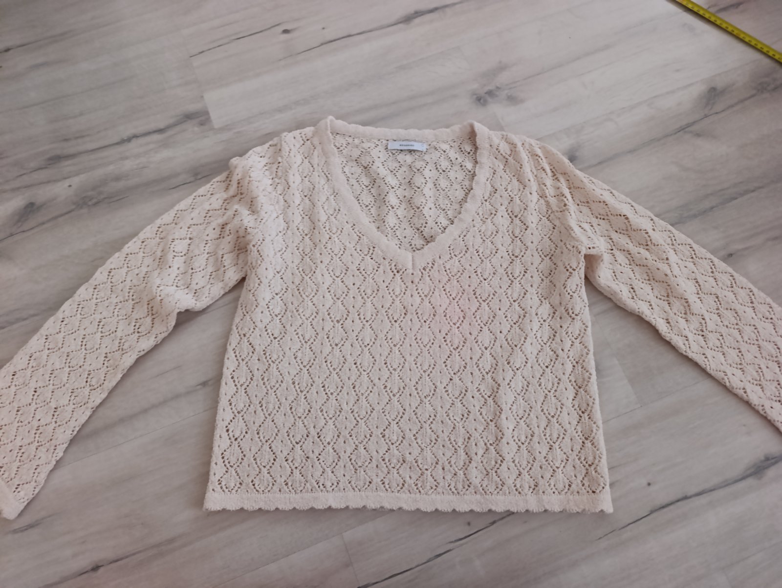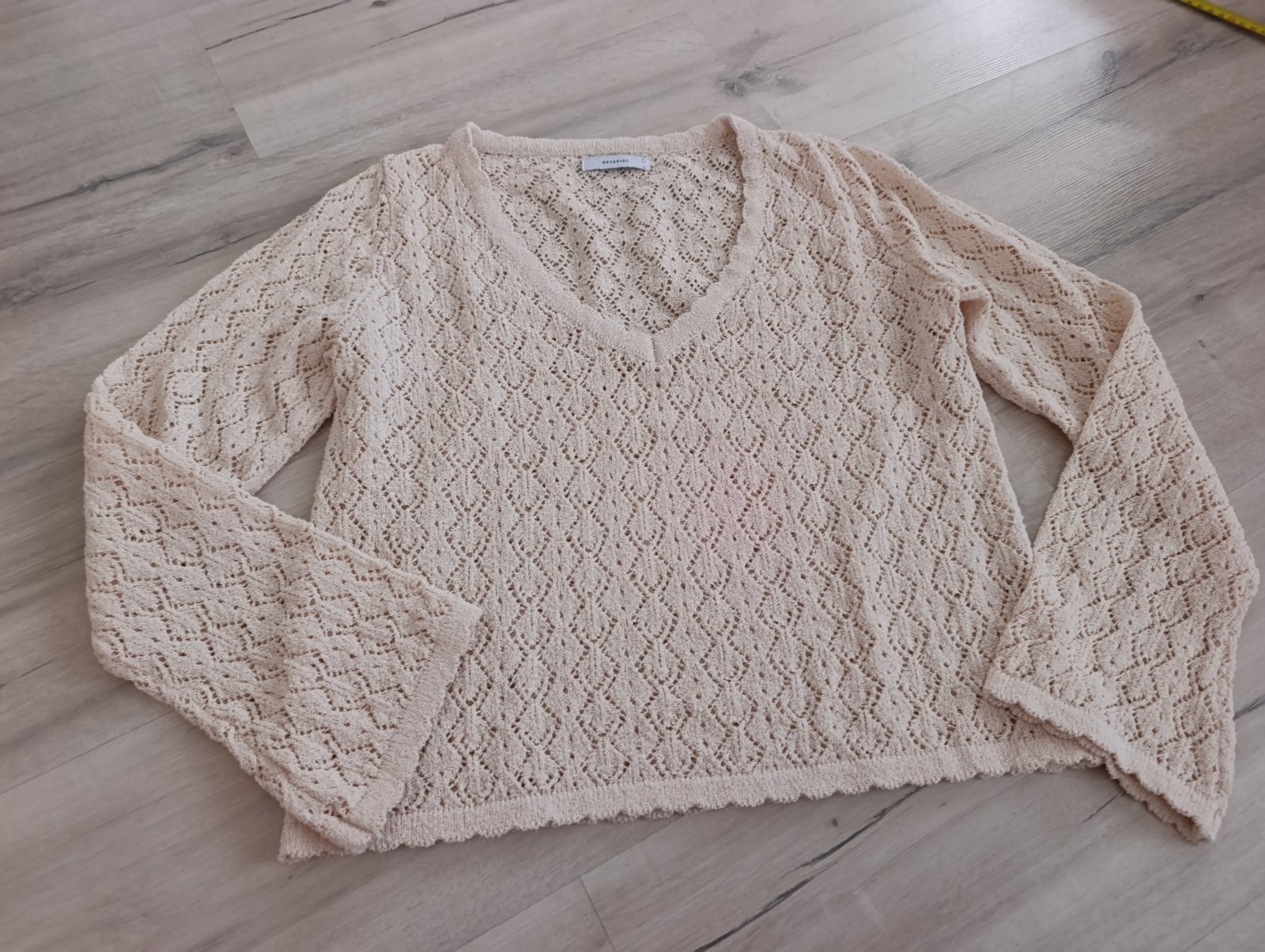 Krásny dierkovaný svetrík s výstrihom a rozšírenými rukávmi, top stav iba 1x oblečený, uvedené L ale sedí na M. Pri výmene 10€