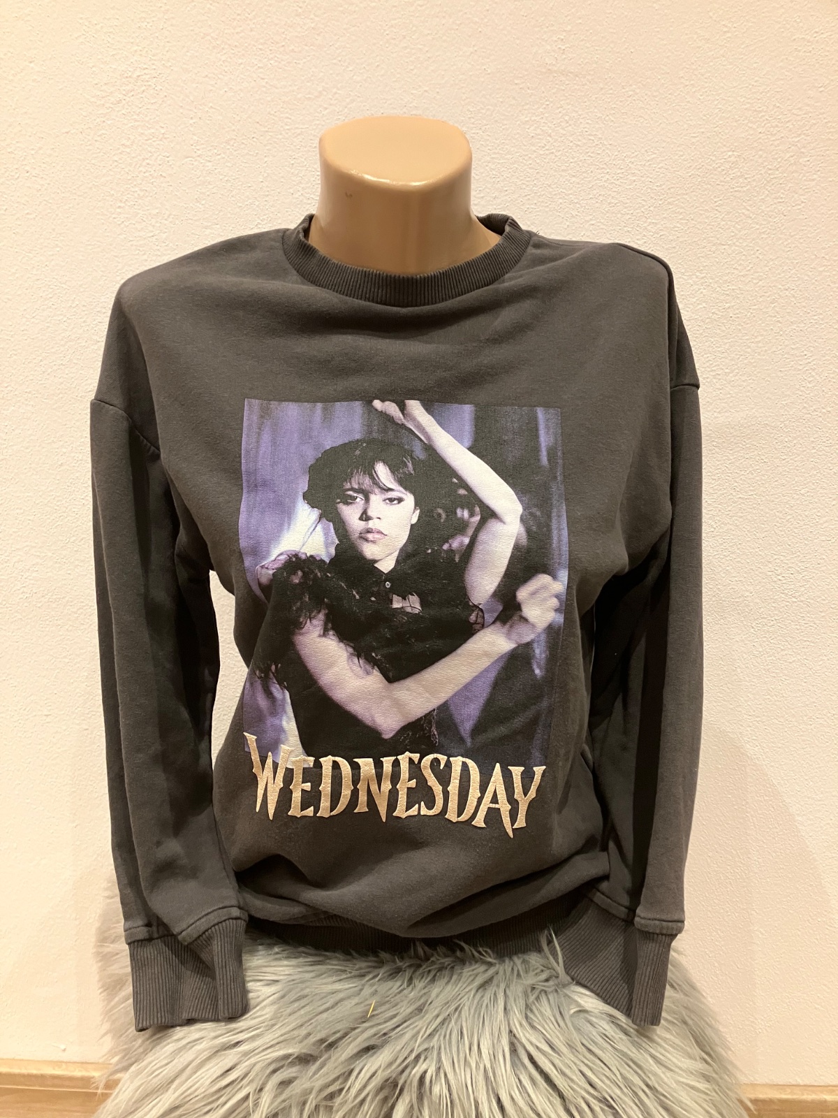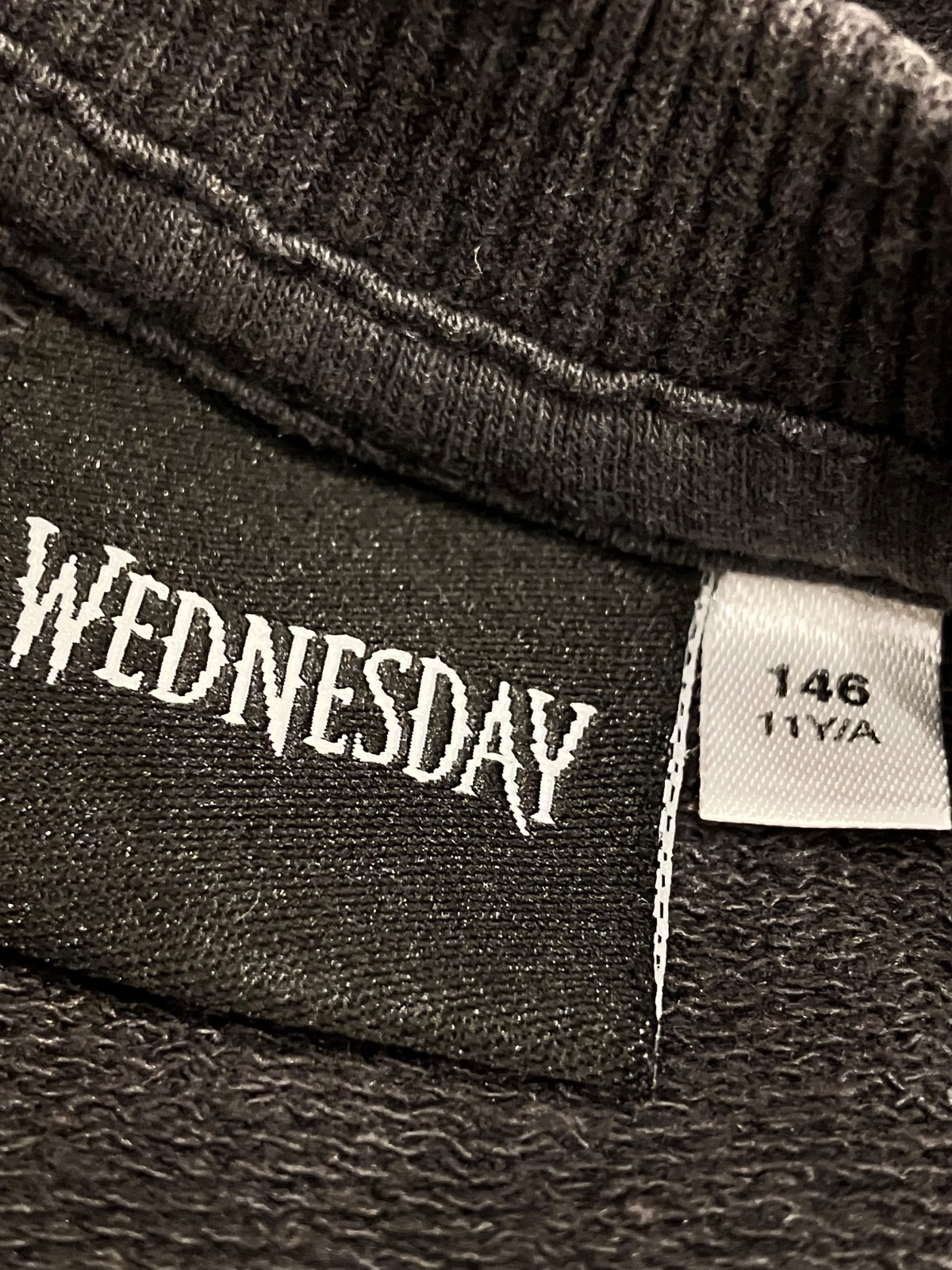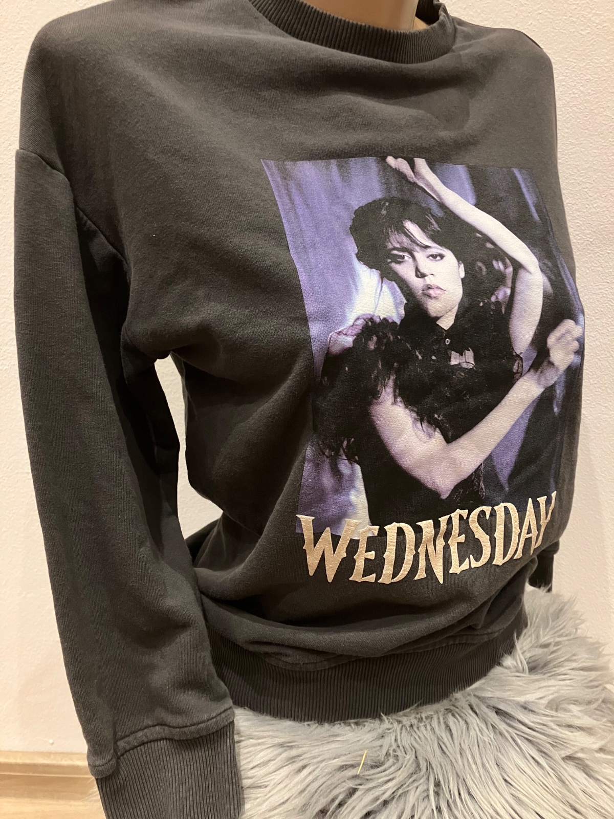 Dievčenská mikina s potlačou a nápisom Wednesday, okrúhly výstrih, jemne elastická, materiál 65%bavlna 35%polyester.
