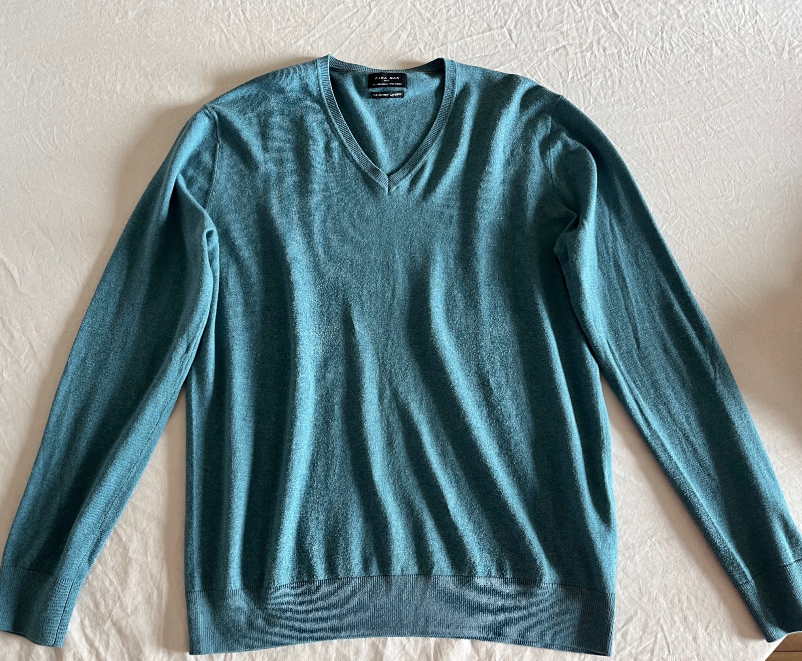 Predám tenký bavlnený svetrík. Veľkosť uvedená L, sedí na M- L. Dĺžka 66cm, šírka popod pazuchy 59cm, rukáv od krku 78cm. Nosený, zohľadňujem v cene, určite ešte poslúži.
