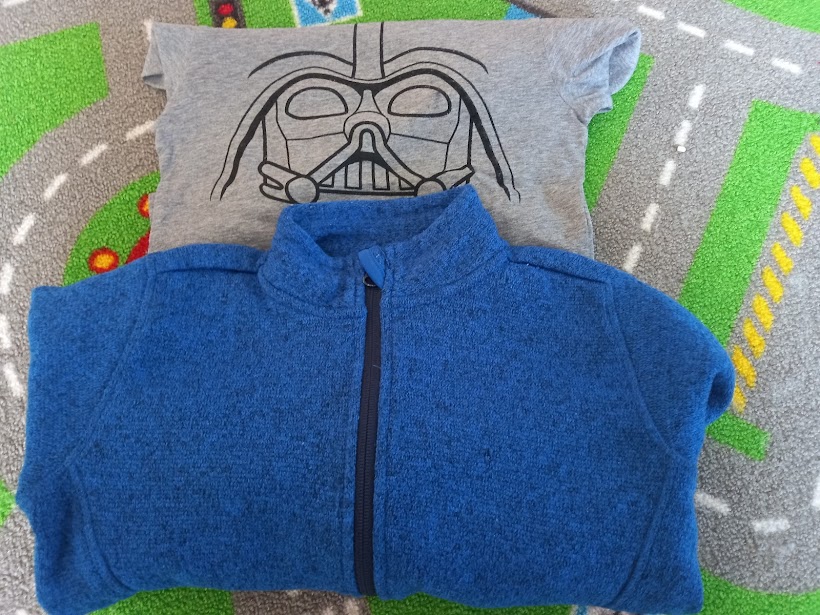 Predam krasnu modru mikinu lupilu, 122/128 + prikladam lego tricko star wars, ma flaky od fixky