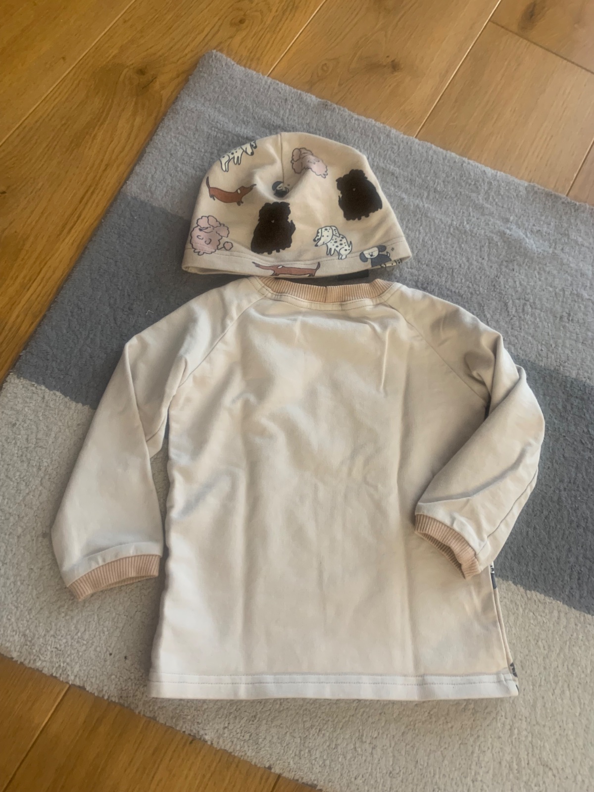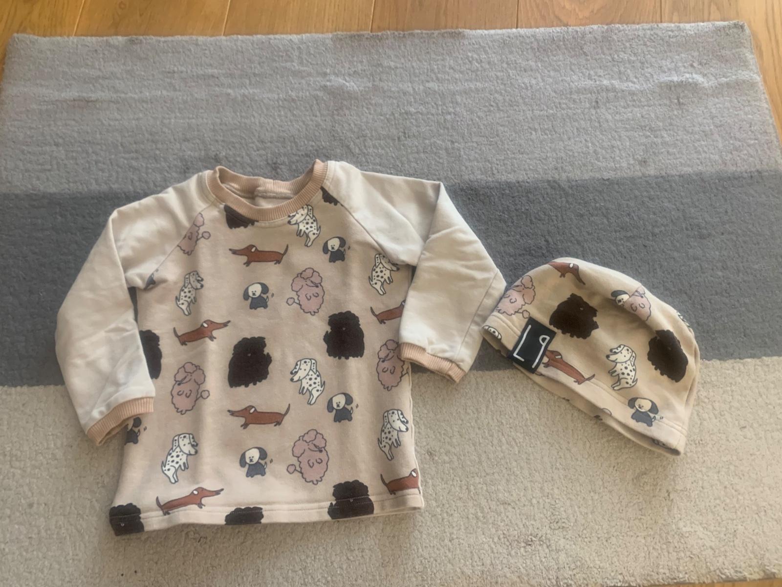 dobrý stav, mikina 80, čiapka veľkosť S, syn nosil okolo roka, roka a pol