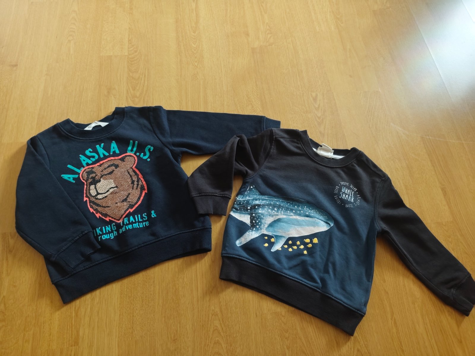 2. H&M tmavomodrá Mikina, veľmi dobrý stav, zvnútra počesané, píše veľ. 98, ale podľa mňa sedí už od 92, premerajte, flitre nie sú premieňacie.
