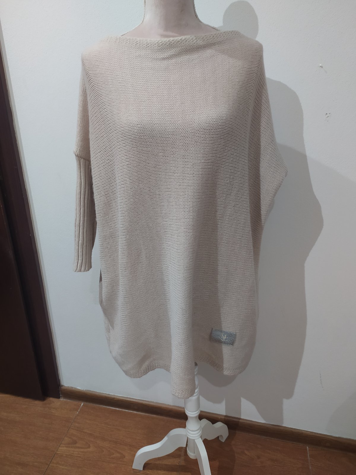 Krásny svetrík , asimetrickeho strihu.Vel Uni vhodné pre veľ S-L,svetrík sa dá nosiť k rifliam ,legínami ale aj ako šaty k vysokým čižmám ,super stav