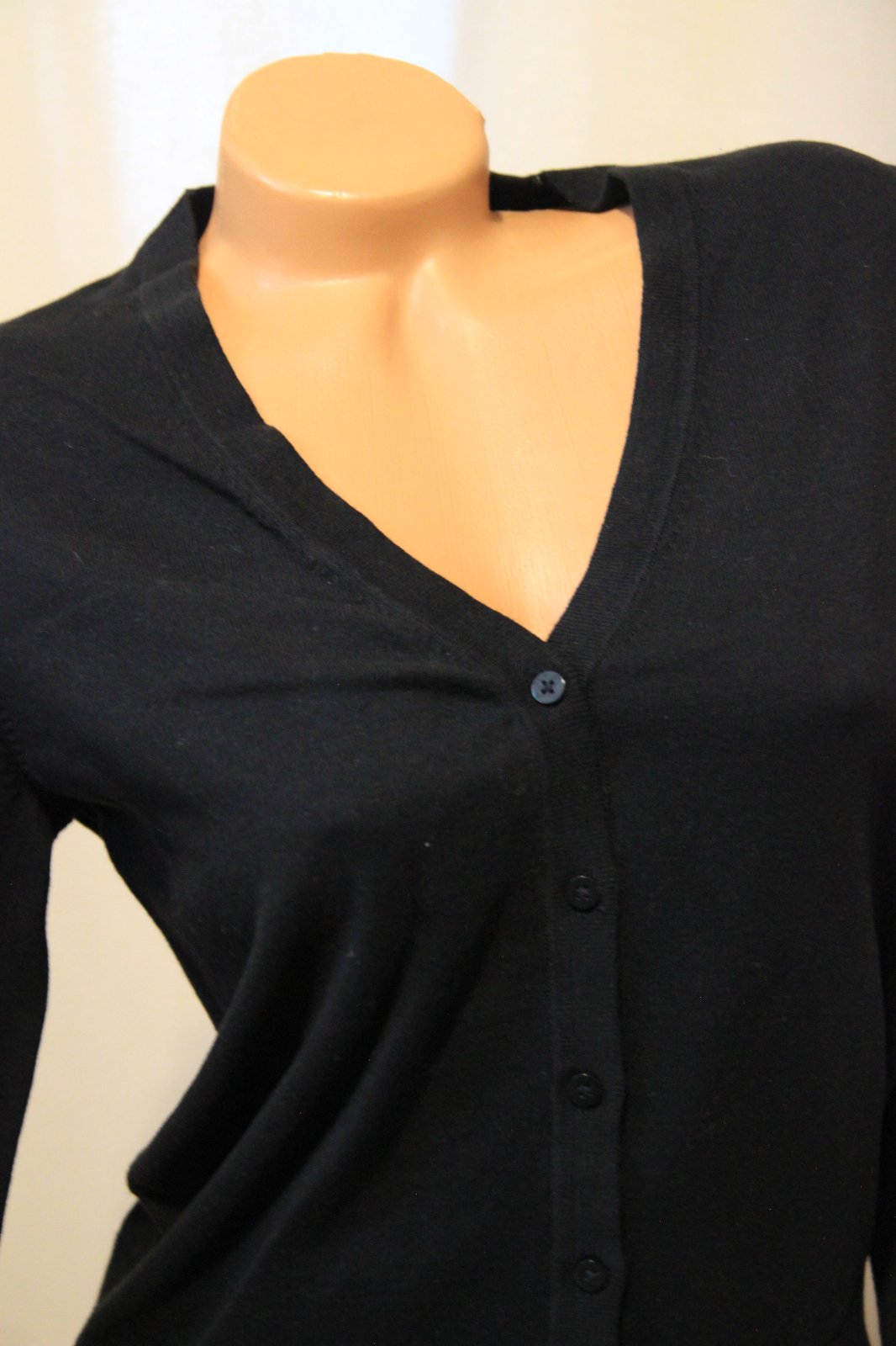 Čierny sveter na gombíky, veľkosť M, obsahuje 80%bavlny. Nosený - má mini žmolky.