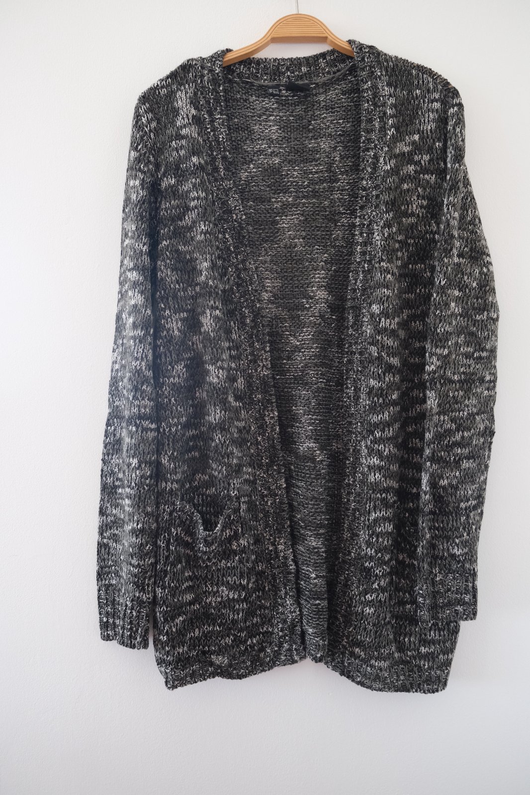 = tenký sivočierno biely kardigán s vreckami , bez zapínania