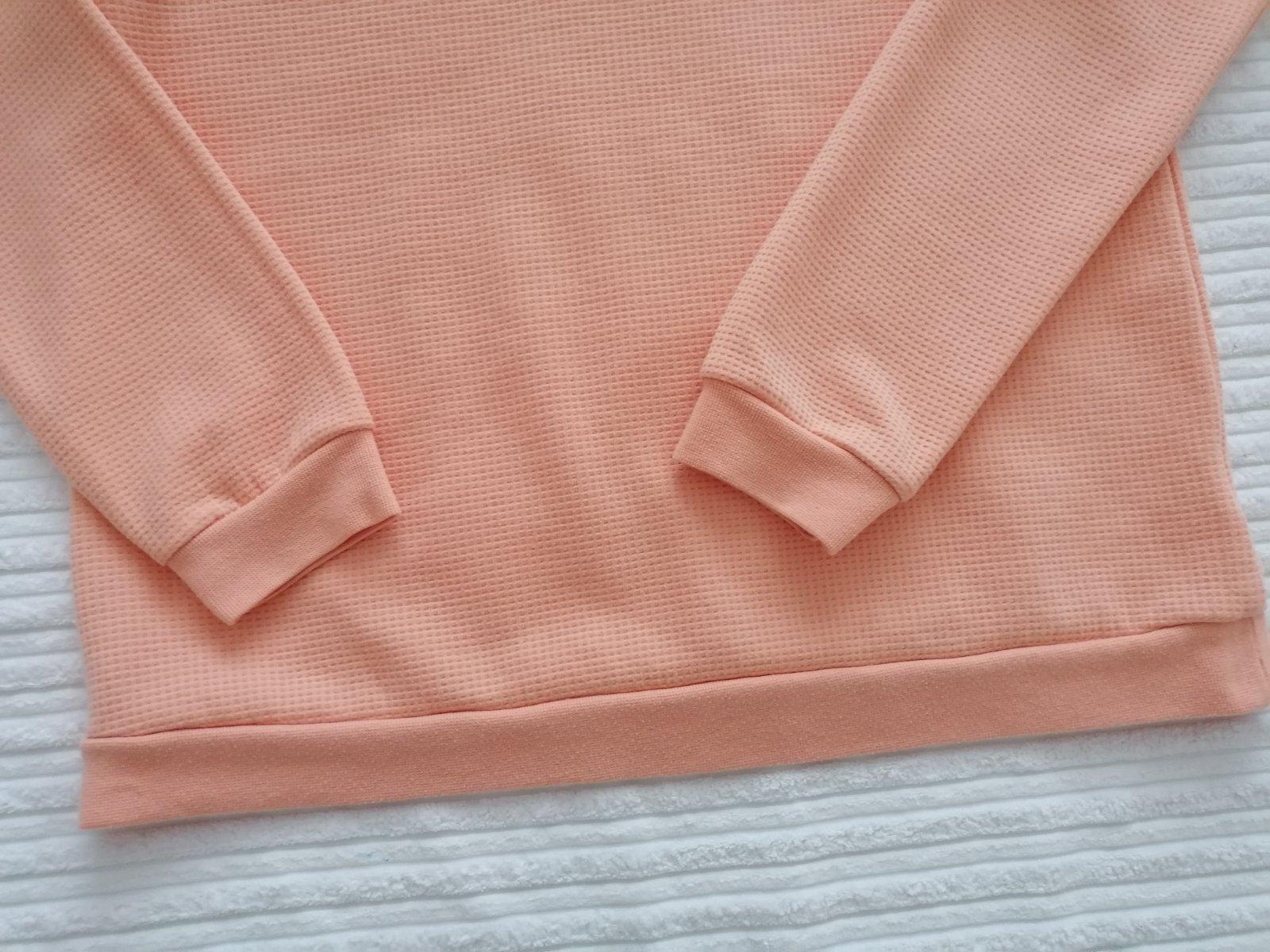 Nosená, na rukáve dva slabé fliačky (nedalo sa ani dobre odfotiť), inak vo veľmi dobrom stave, pekná marhuľová farba.
