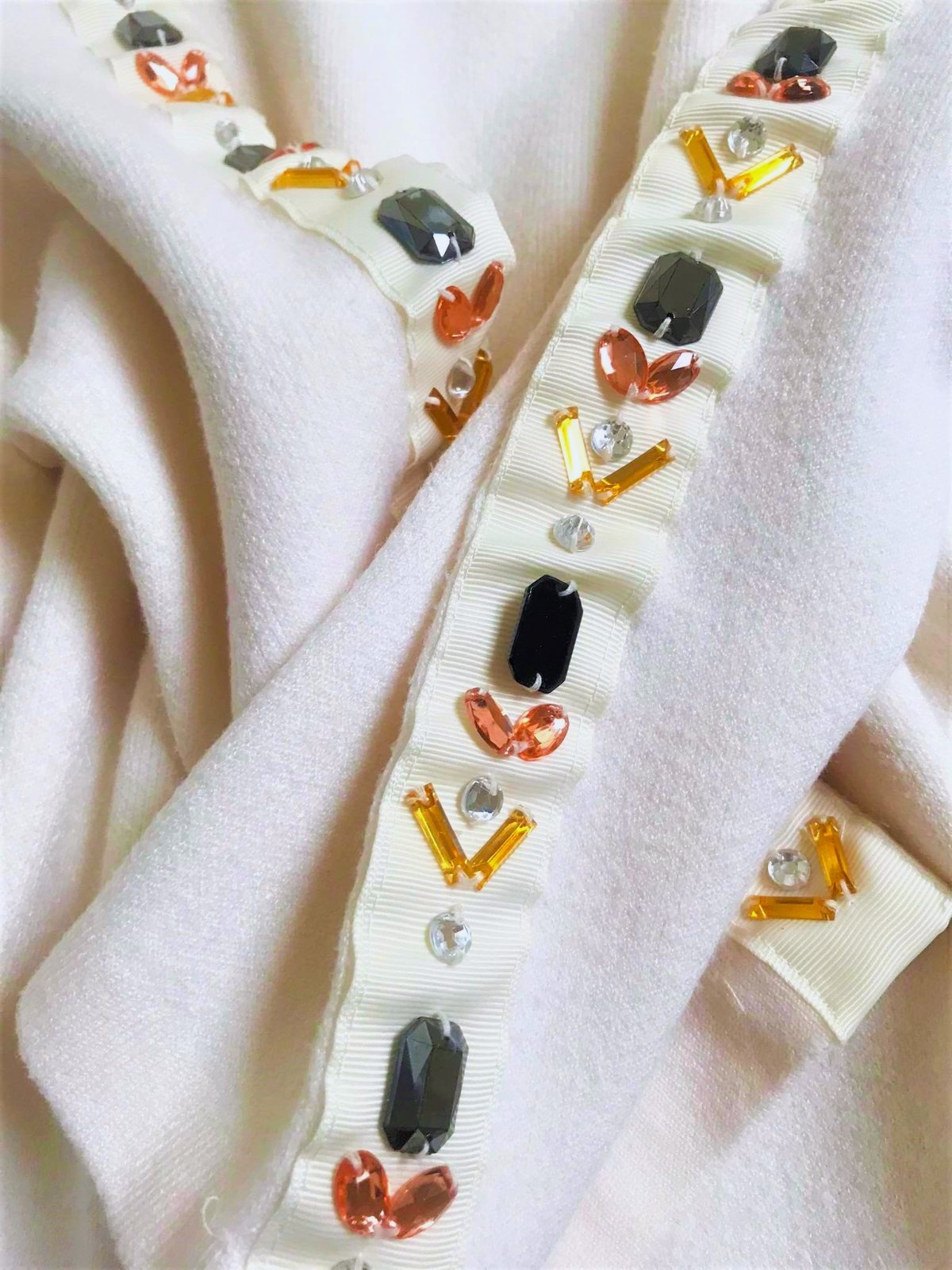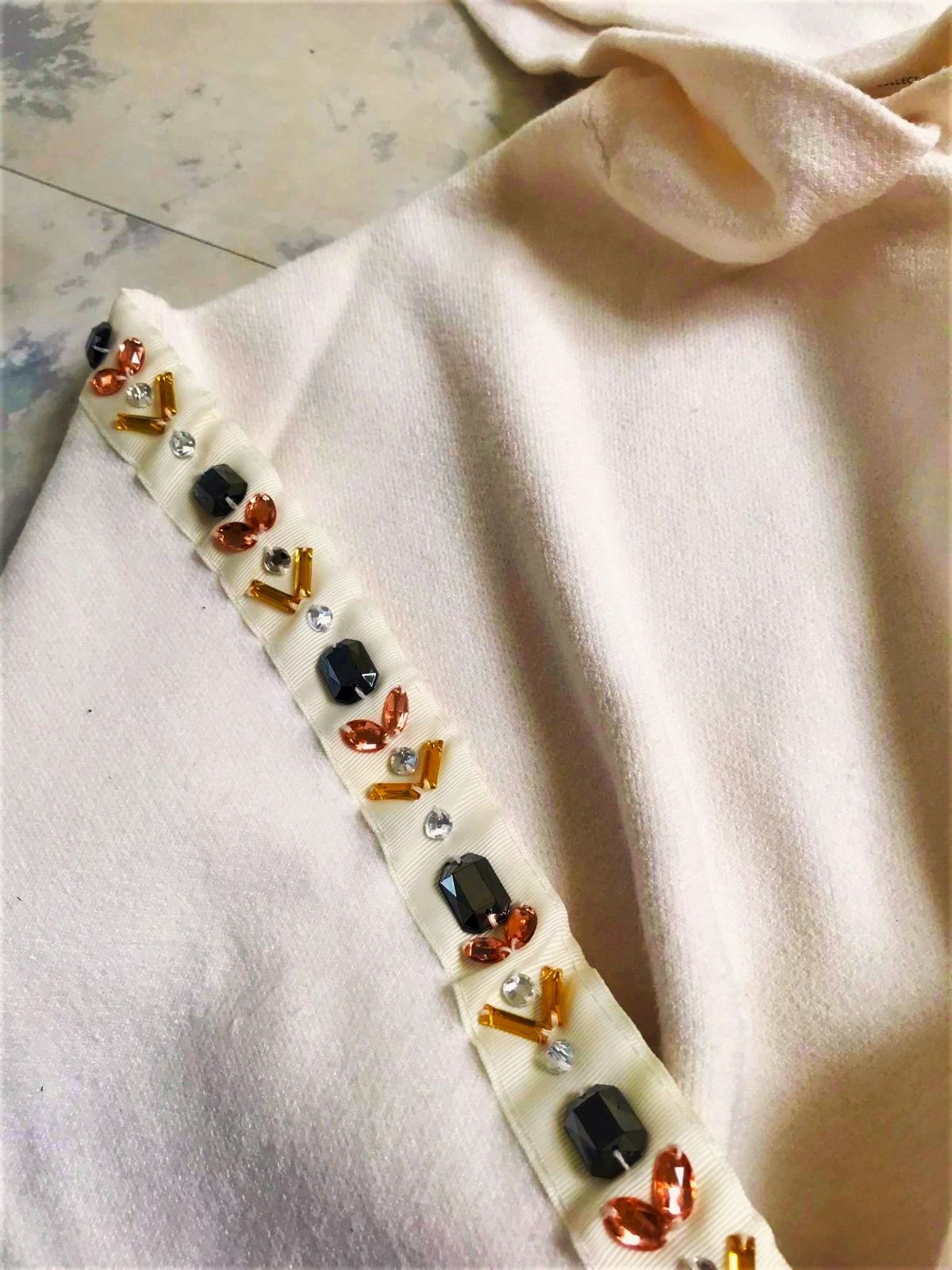 krásna nevšedná mikina z kvalitného materiálu,na boku rozporky,je kratšia,nosí sa ako over size k rifliam s vyšším pásom,jemne smotanovo biela farba, po rukách krásne zdobenie kamienkami - viď foto,dlžka celkom = 58 cm, dlžka od pazuchy dole - meraná na boku = 36 cm,ramená = 19 cm,rukáv = 48 cm,šírka meraná pod pazuchou = 53 x 2 cm,rukáv je tzv. spadnutý,nosí sa voľná na spôsob over size,špičkový teplejší materiál : 52 % viskóza,30 % polyester,18 % nylon.