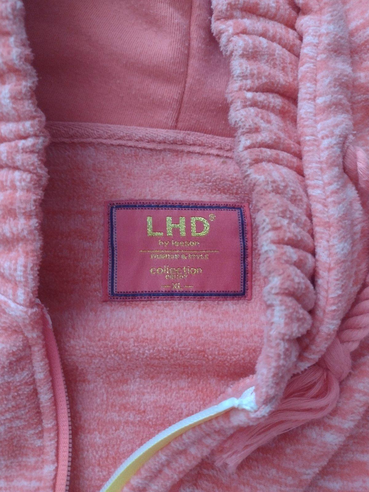 krana lososova ,elirovana mikina. mikina je velkeho oversize strihu. velkost neviem povedat, visacku som odstrihla,no ja som ju nosila ako velku oversize, ako klasicka sadne kludne aj na XXL par ...