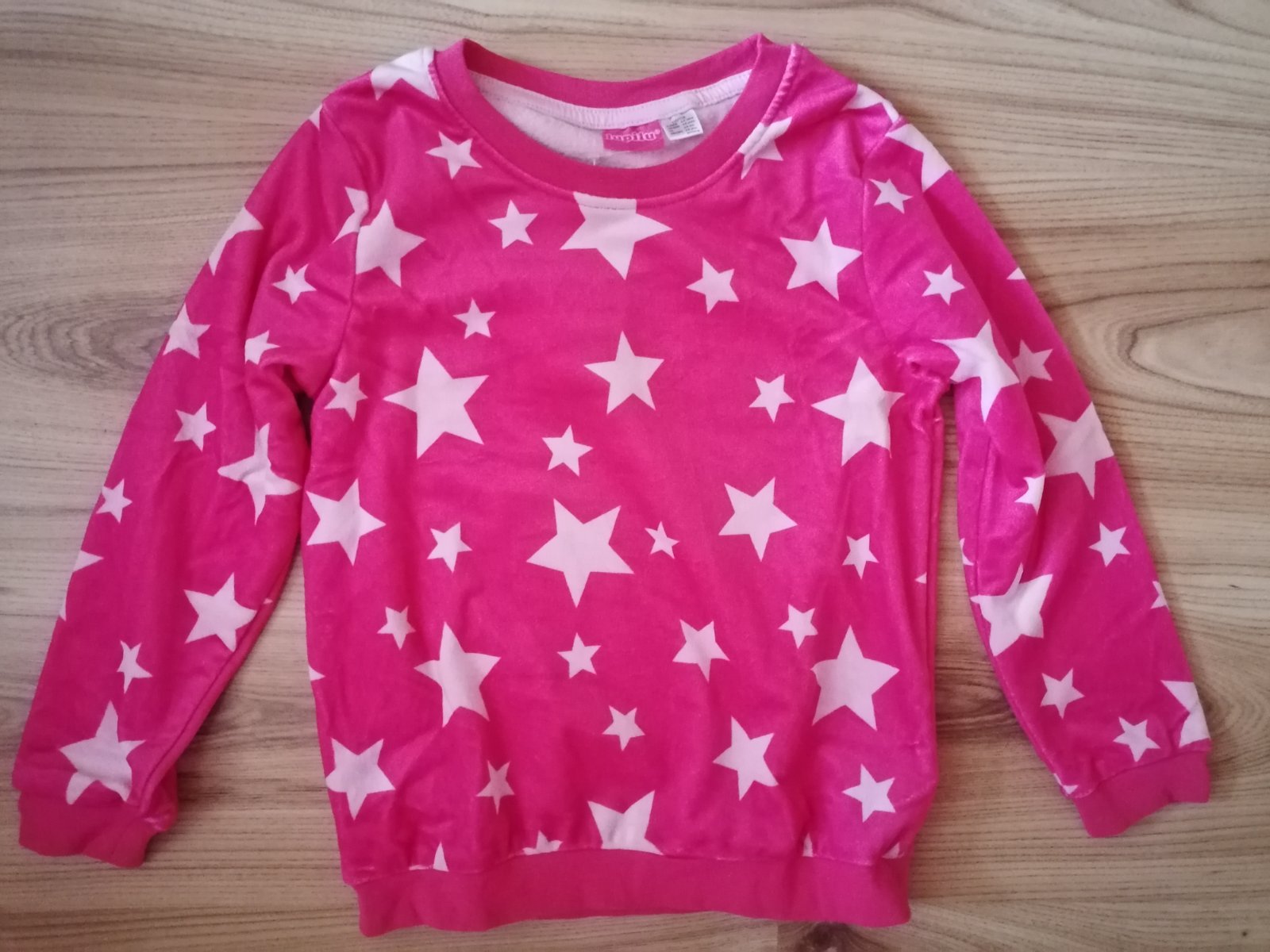 Mikina je nová, na chrbte je obrázok, veľkosť je uvedená 110 /116.