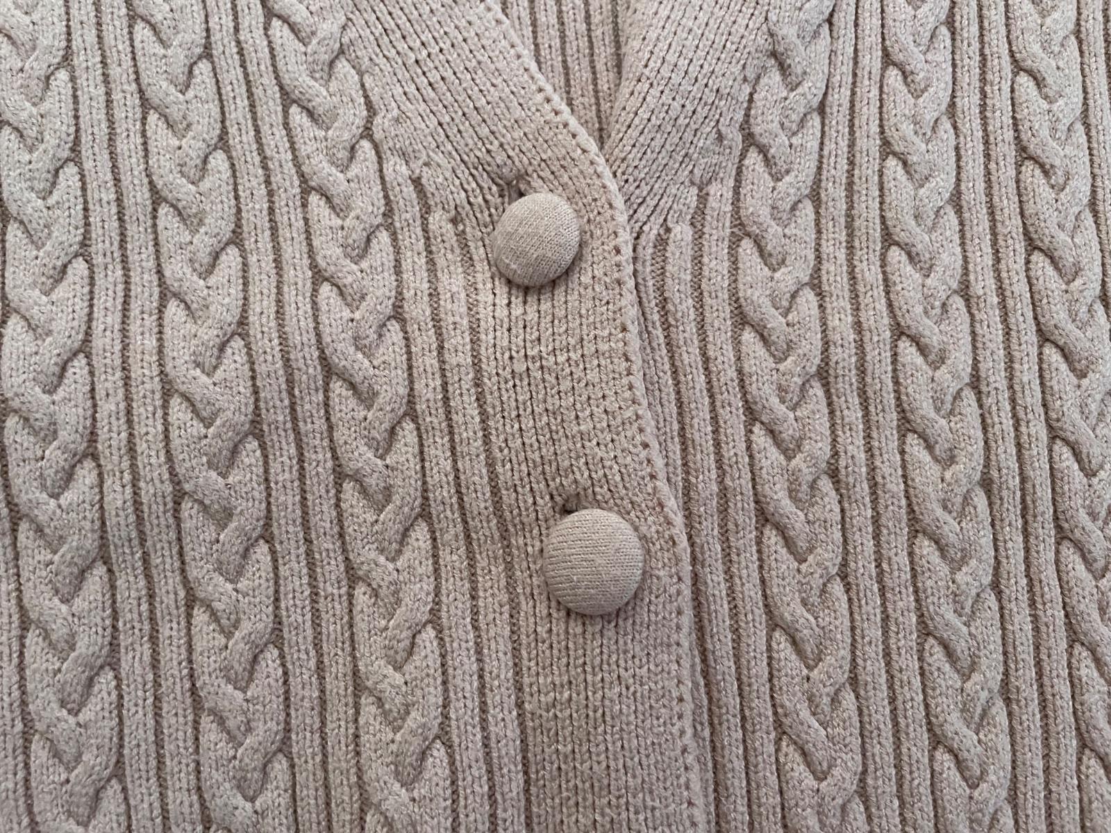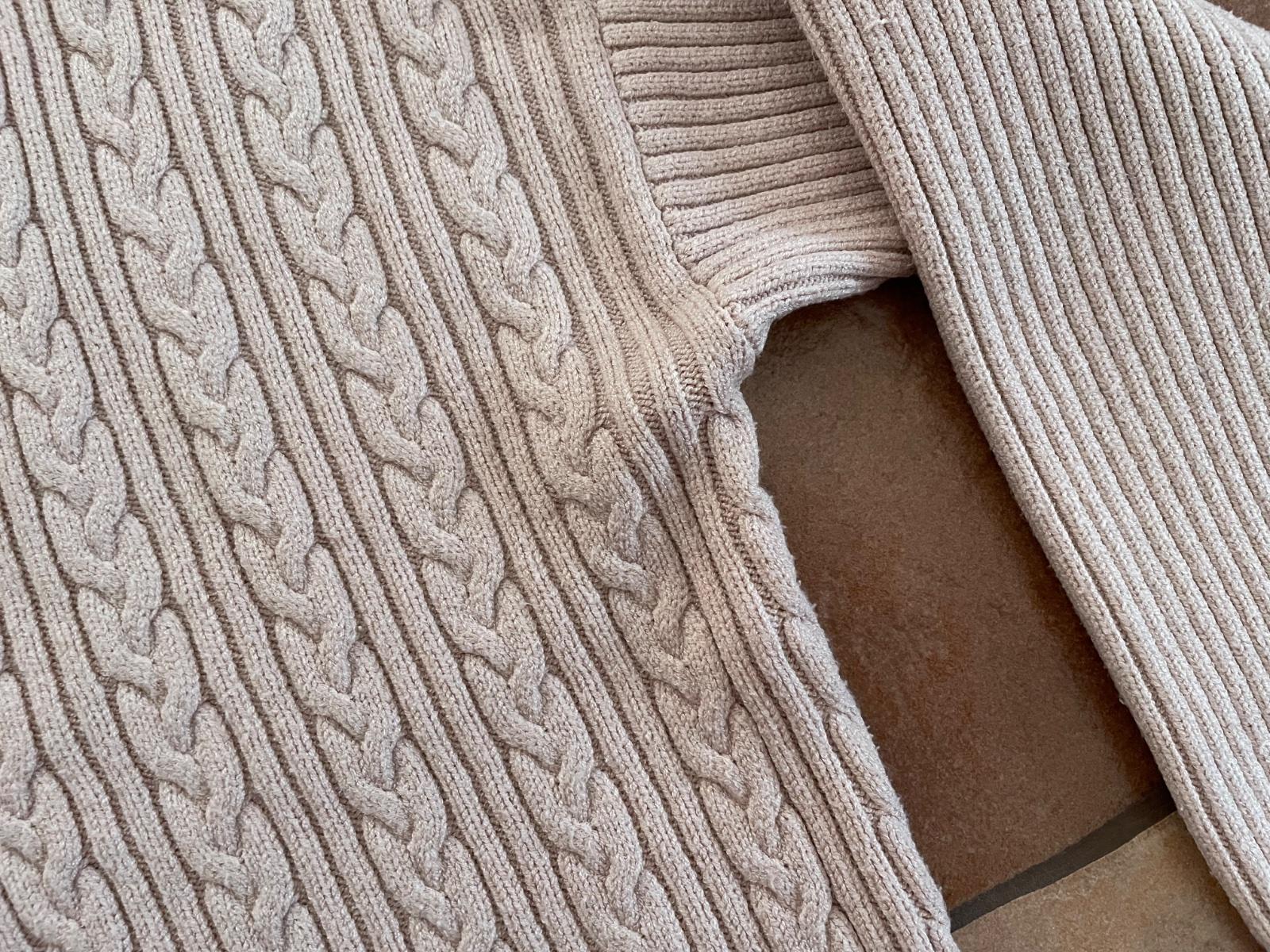 Pekny použitý stav. Zmolecky sa nájdu. Visacka je odstrihnuta, velikost S-M. Celková dĺžka 51cm, sirka 2x49cm, rukáv od krku 64cm.