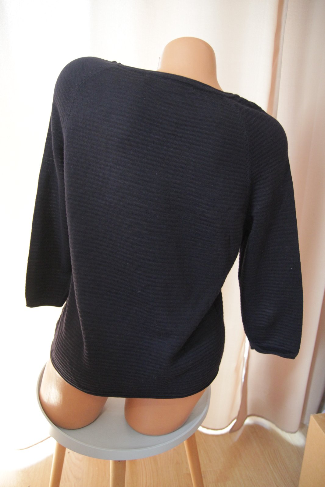 Tmavo modrý svetrík, tenší materiál, veľkosť XS, sedí aj na S. Top stav. Materiál je 100% bavlna.