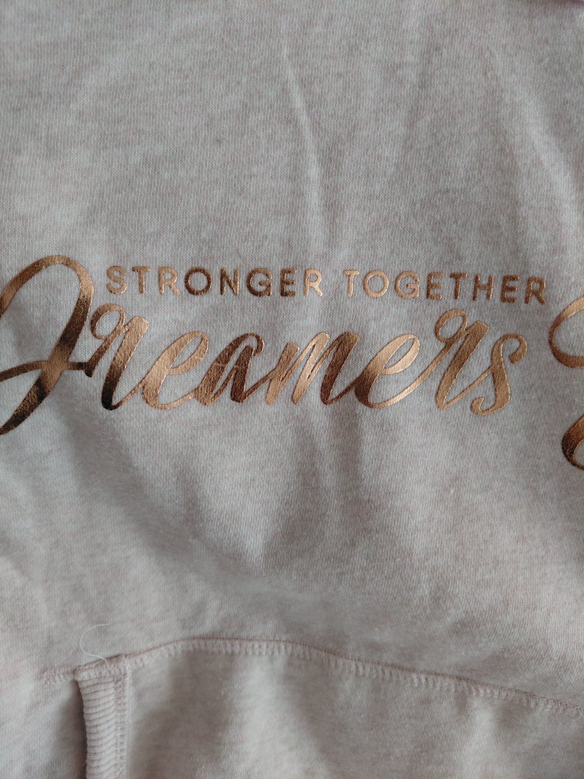 Mikina s nápisom a kapucňou.