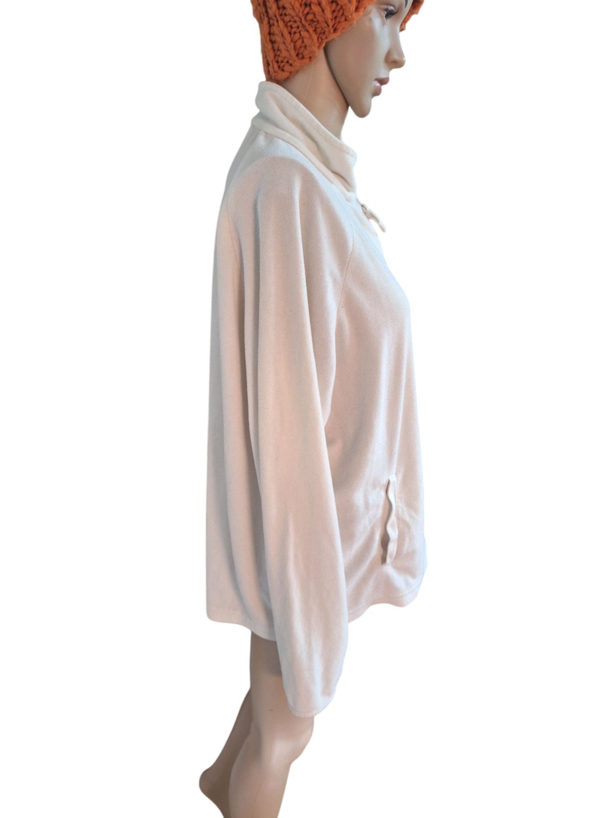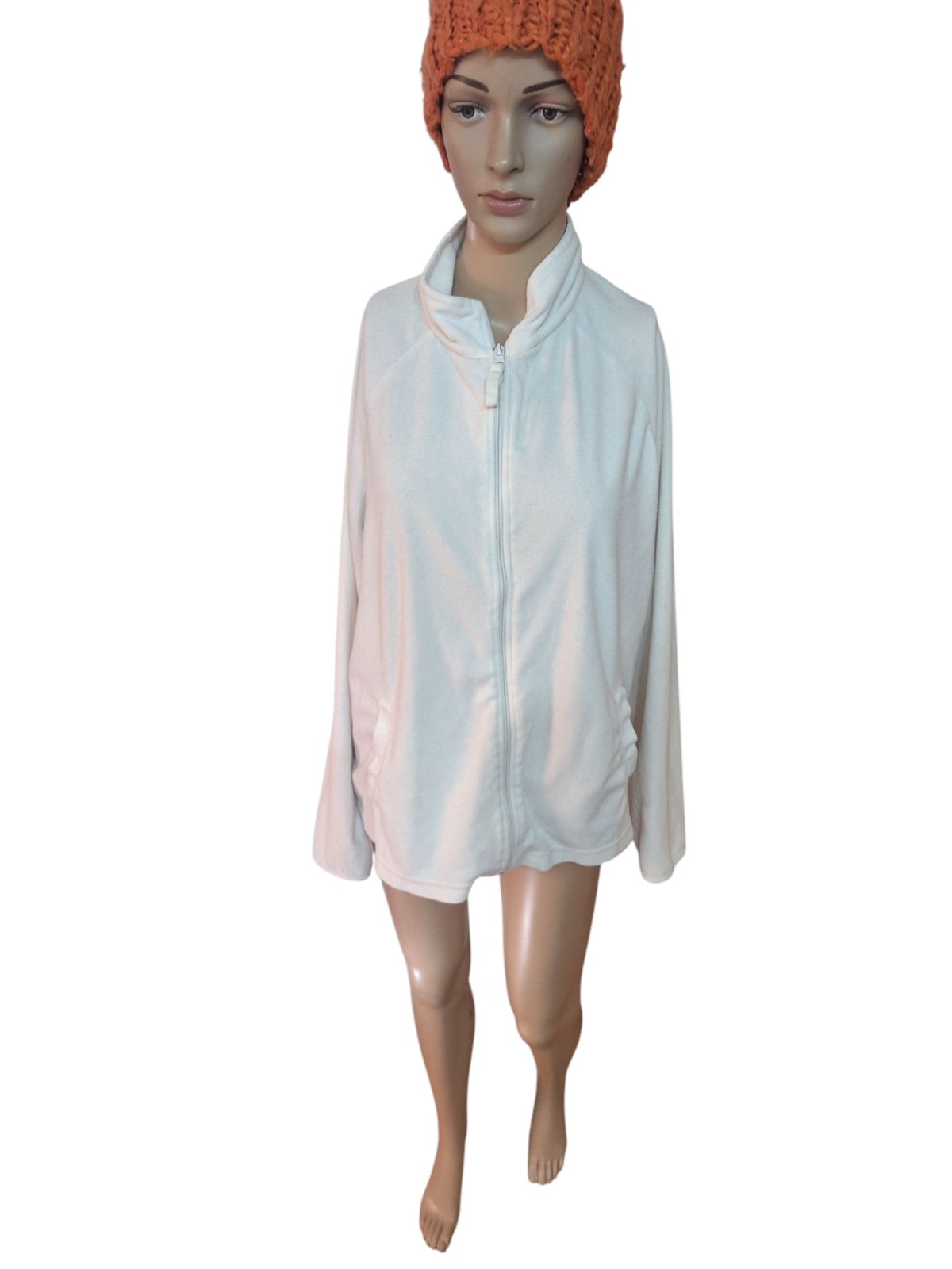 Dámska flišová mikina . Je mierne elastická. Dĺžka je 60cm,obvod hrudníka je 116cm a obvod pása je 118cm. Dĺžka rukáva je od krku 75cm. kód 1718