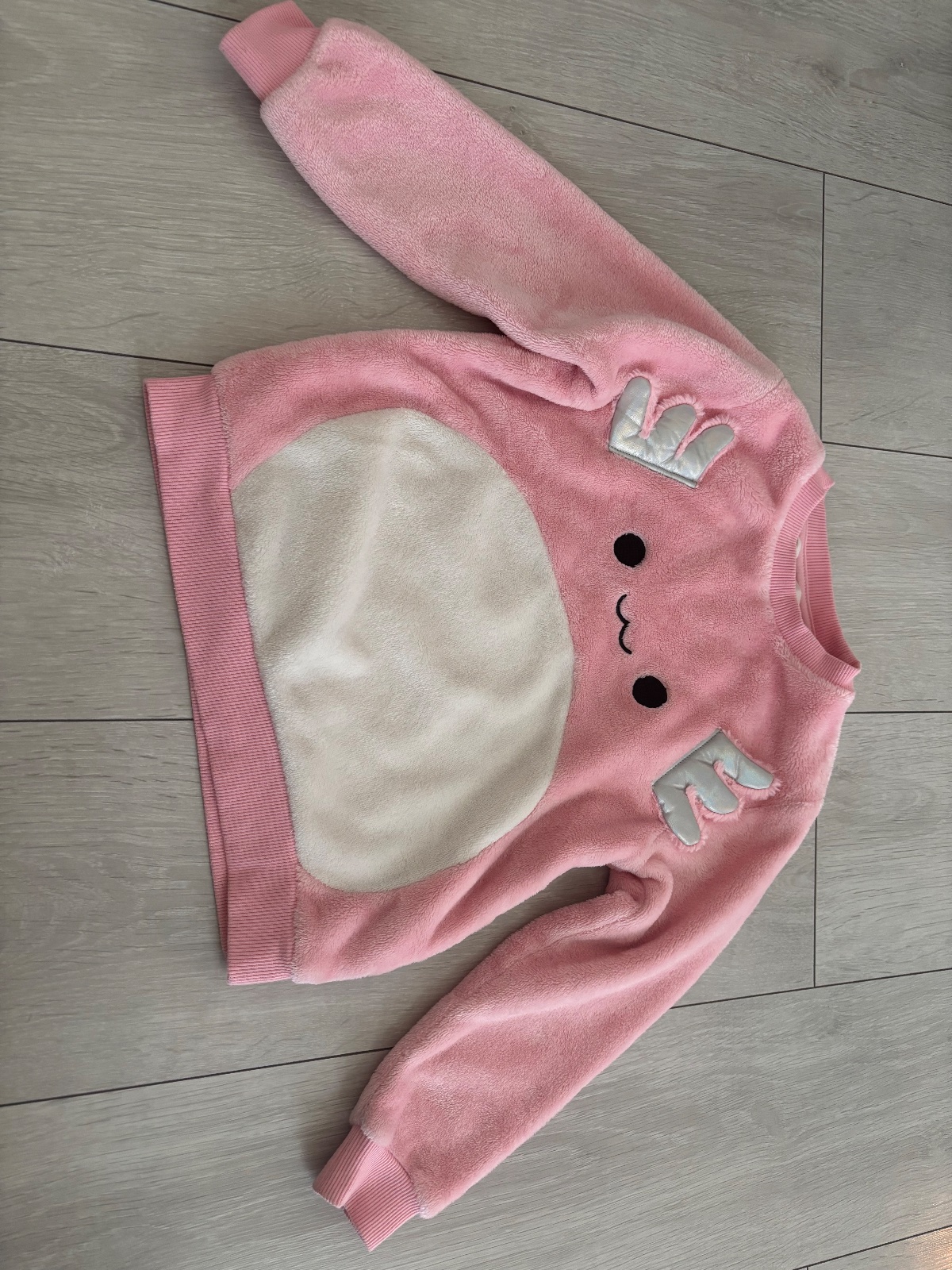 Velkost uvedena 110-116, nosena, mala dierka na chrbte. Sirka 35, dlzka 41 vrpedu 47 vzadu, rukav od krku 50
