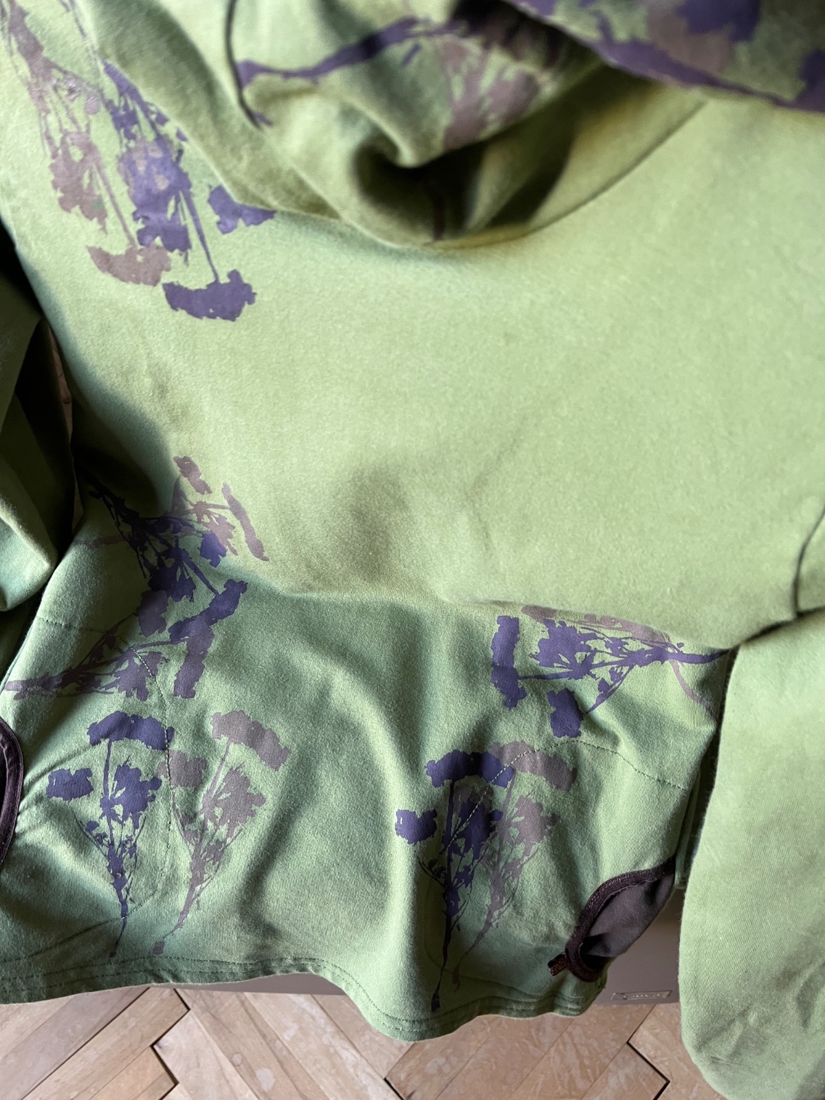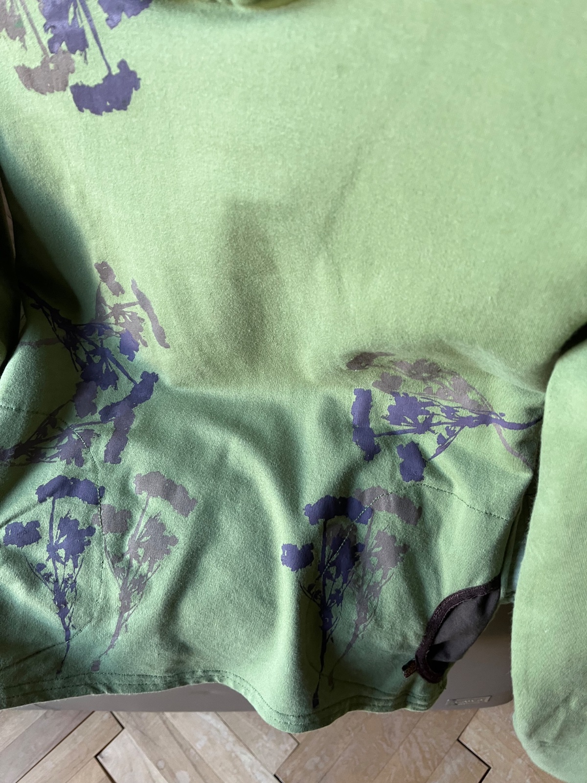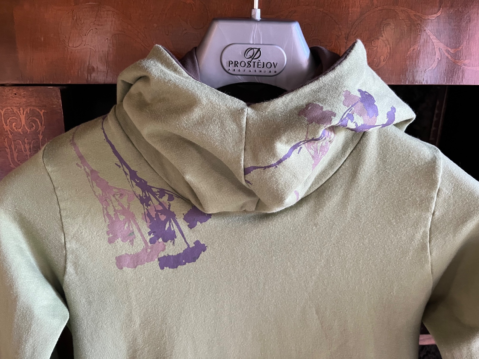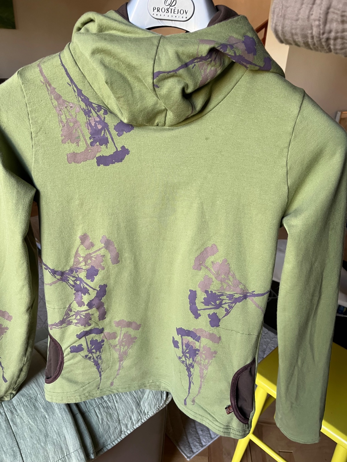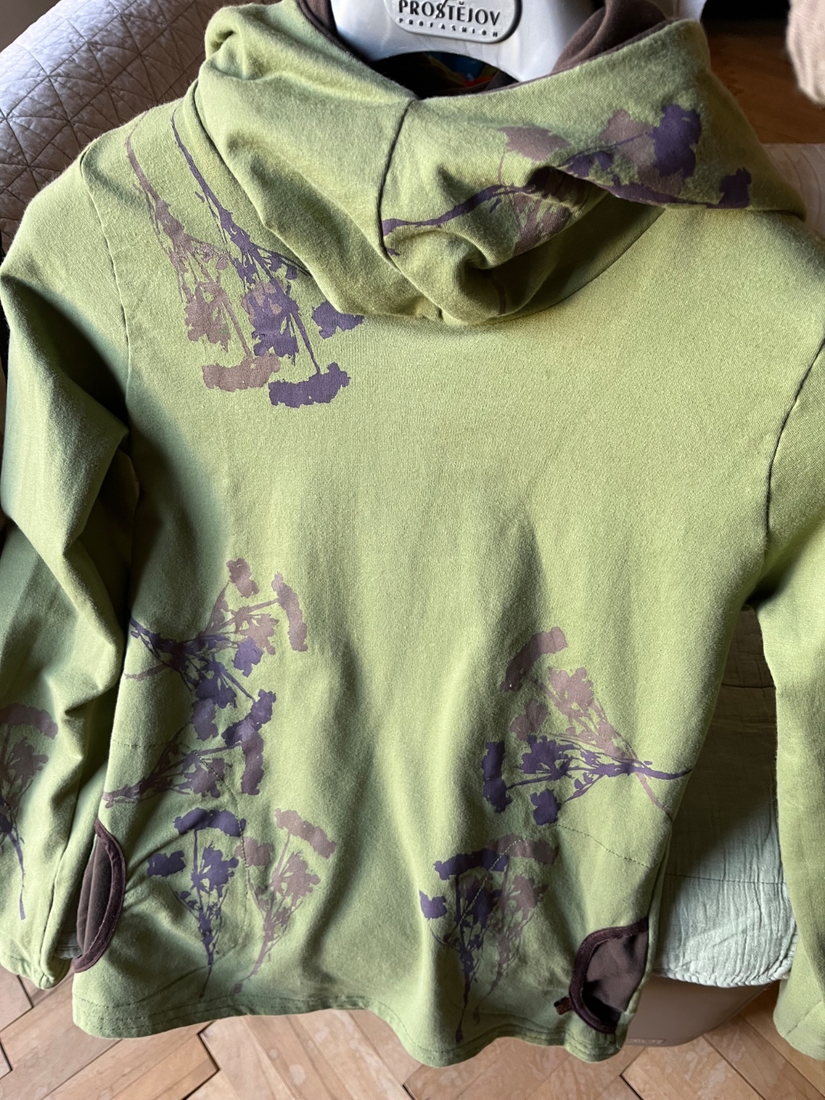 Farba je taká vojenská zelená olivovozelená,realne najbližšie je asi prvá foto.Z počesanej bavlny,elastická,od Ladavy,top stav,obvod hrudník 48cm,potisk 2odtiene hnedej,mám k nej aj tepláky,k cene poštovné