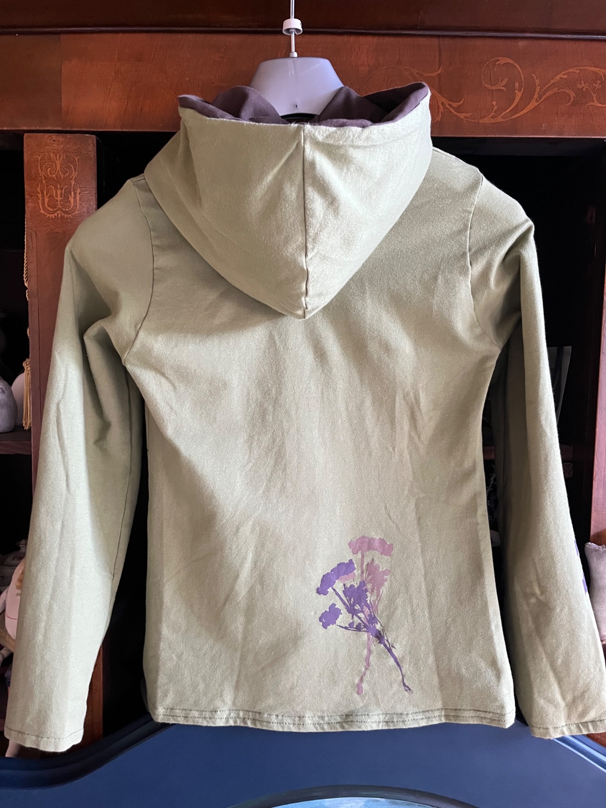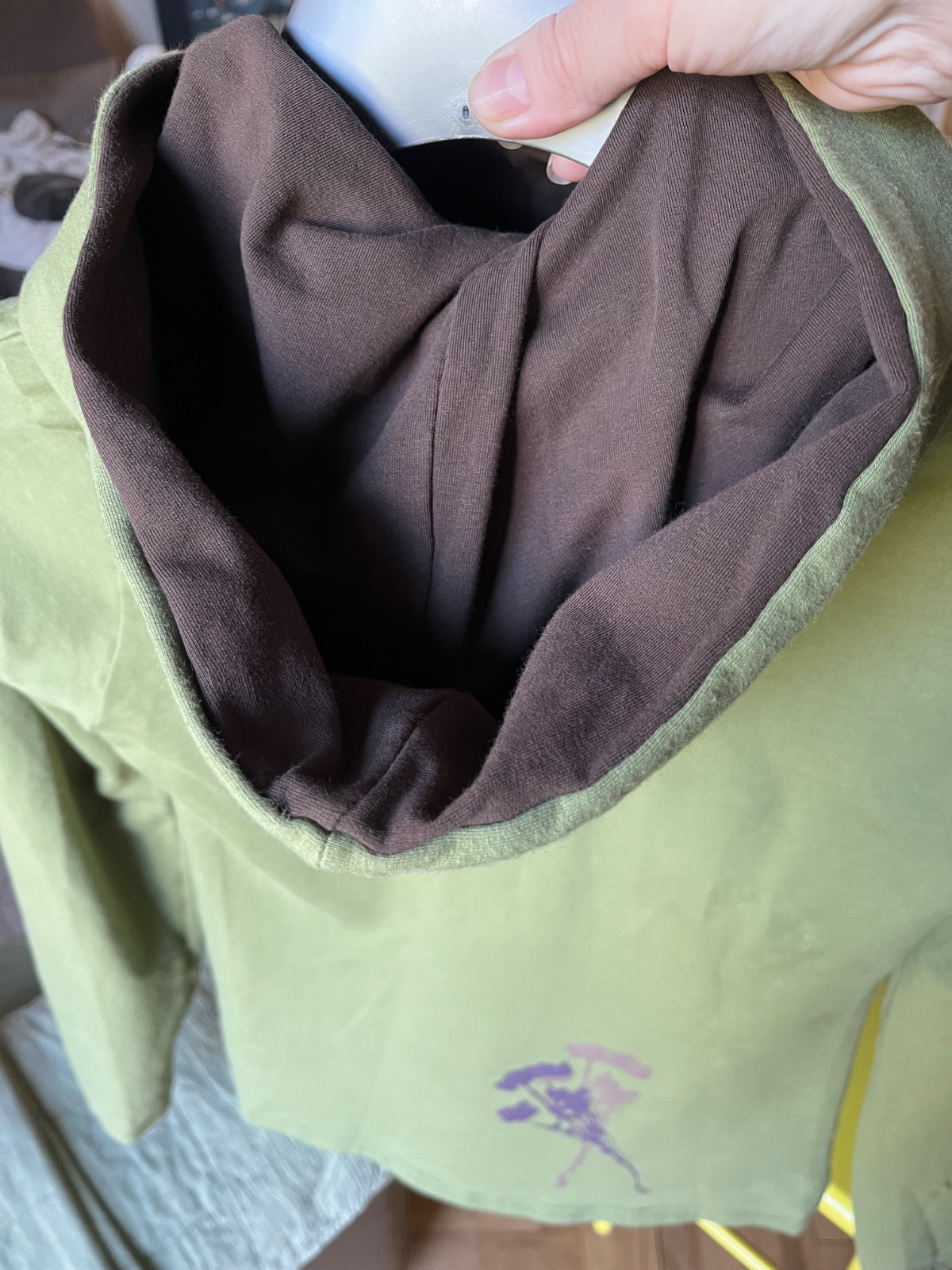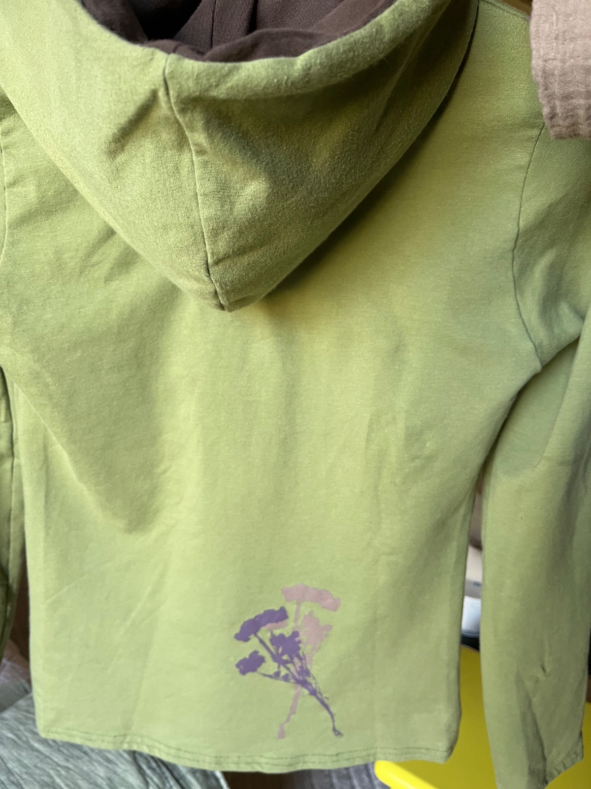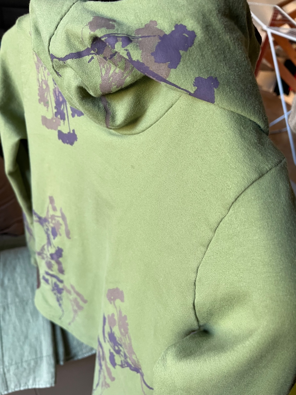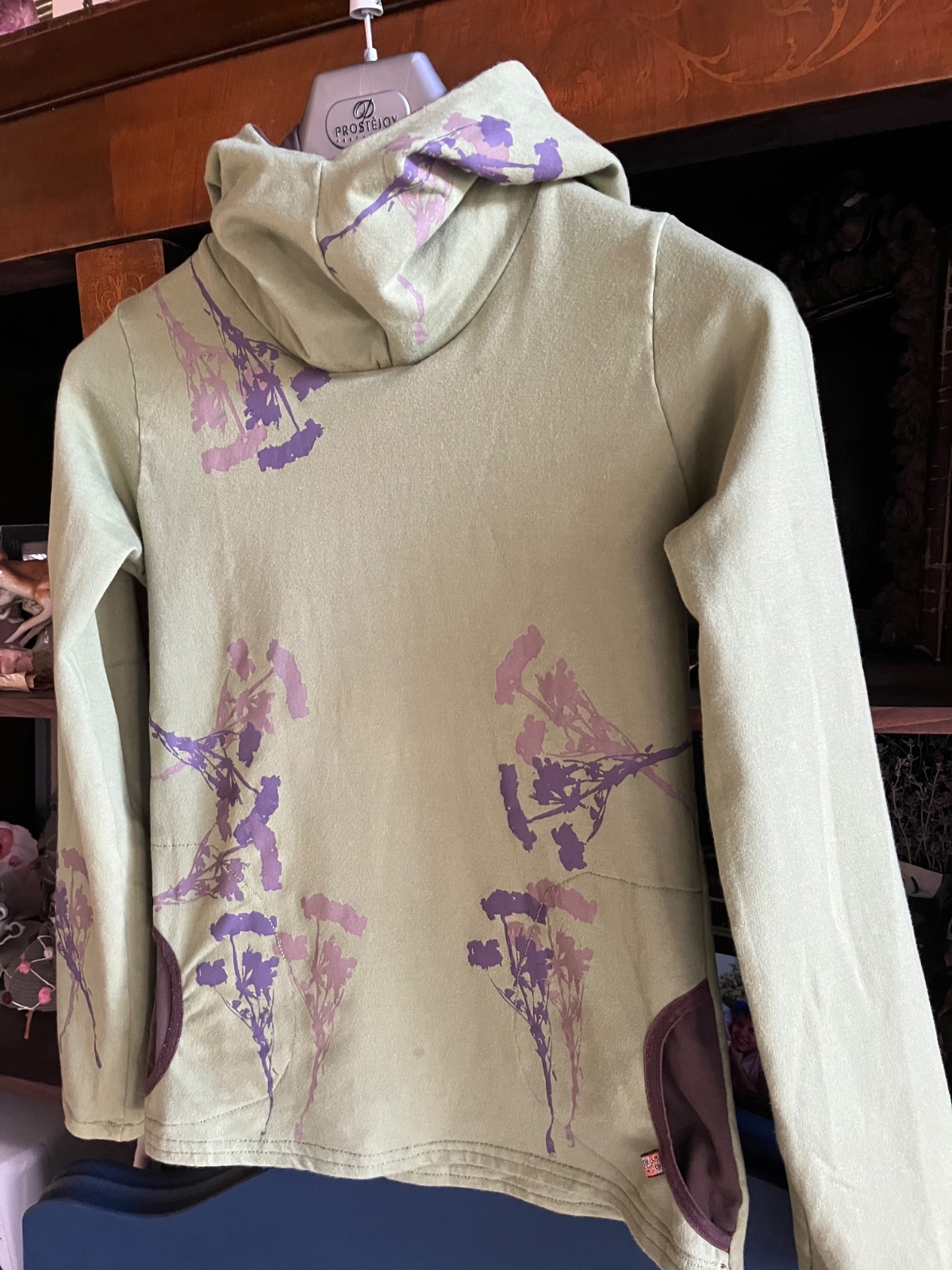 Farba je taká vojenská zelená olivovozelená,realne najbližšie je asi prvá foto.Z počesanej bavlny,elastická,od Ladavy,top stav,obvod hrudník 48cm,potisk 2odtiene hnedej,mám k nej aj tepláky,k cene poštovné