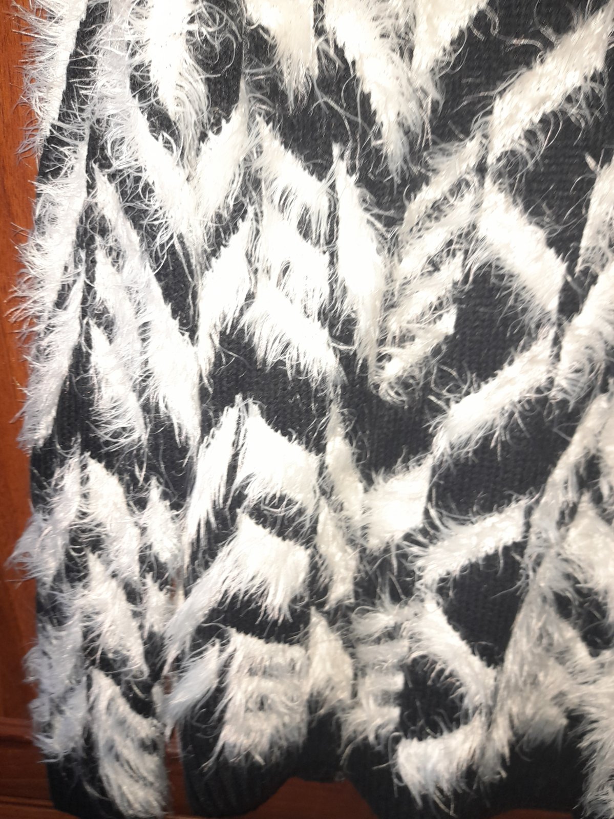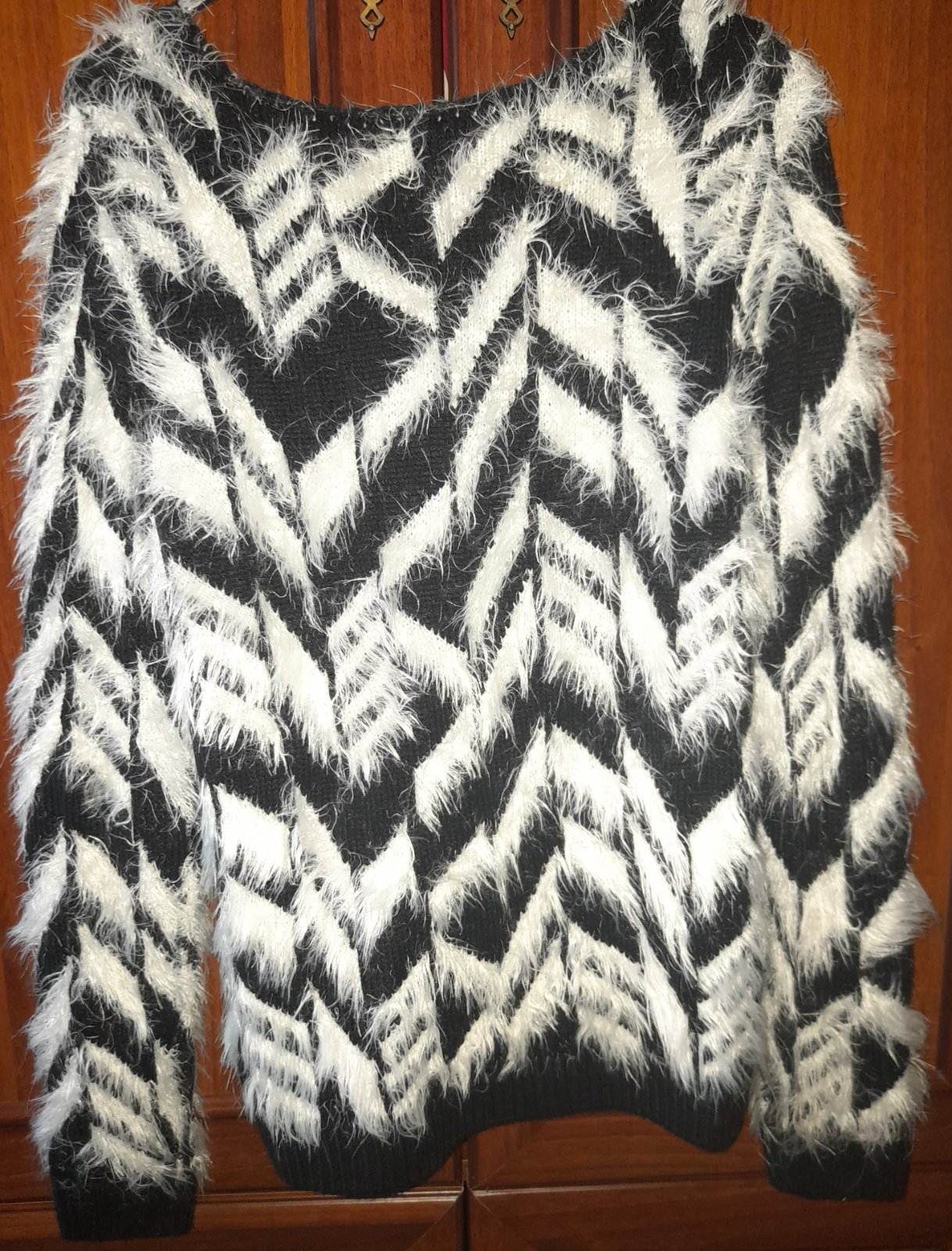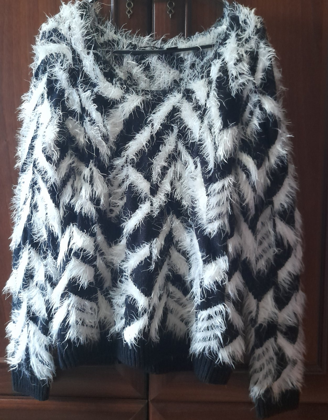 príjemný mäkký materiál, hrubší dobre hreje, dĺžka 61cm, šírka prsia 46x2cm, pás 41x2cm, rukáv 60 cm, elastický natiahne sa ešte, raz vzatý no nesedí mi preto posúvam, oversize strih, ako nový