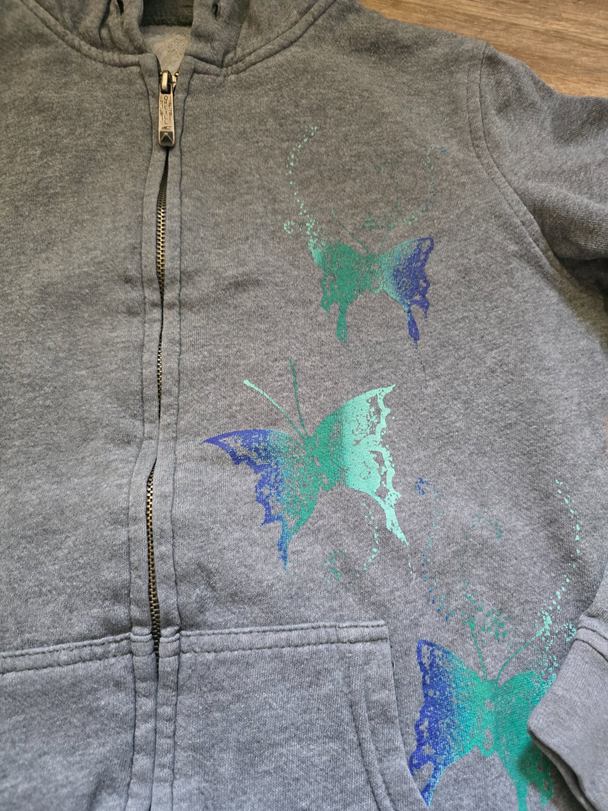 1x oblečená, som nákupná maniačka túto nenosím mám ešte v inej farbe :D Elastická, klokanie vrecká, kapucňa má šnúrky na stiahnutie, šnúrky sú pekne ukončené striebornou prackou-kvalitnejšie nestra...