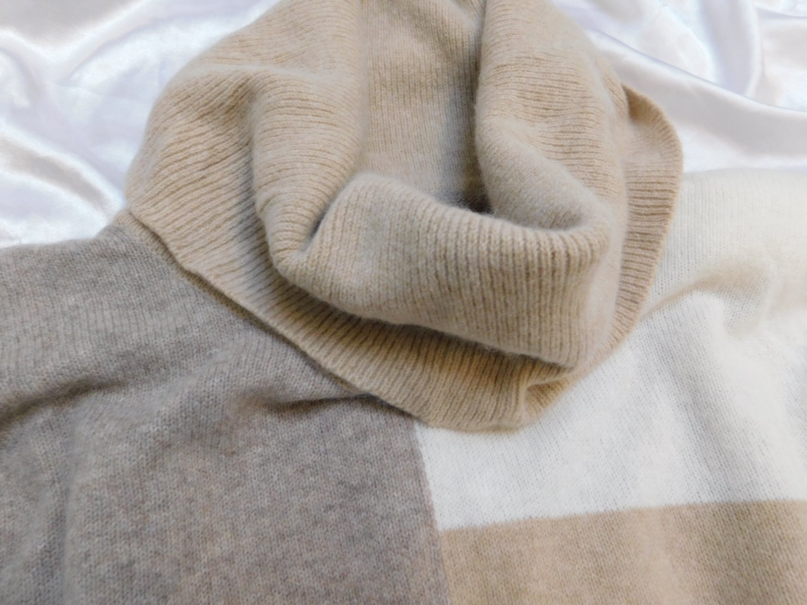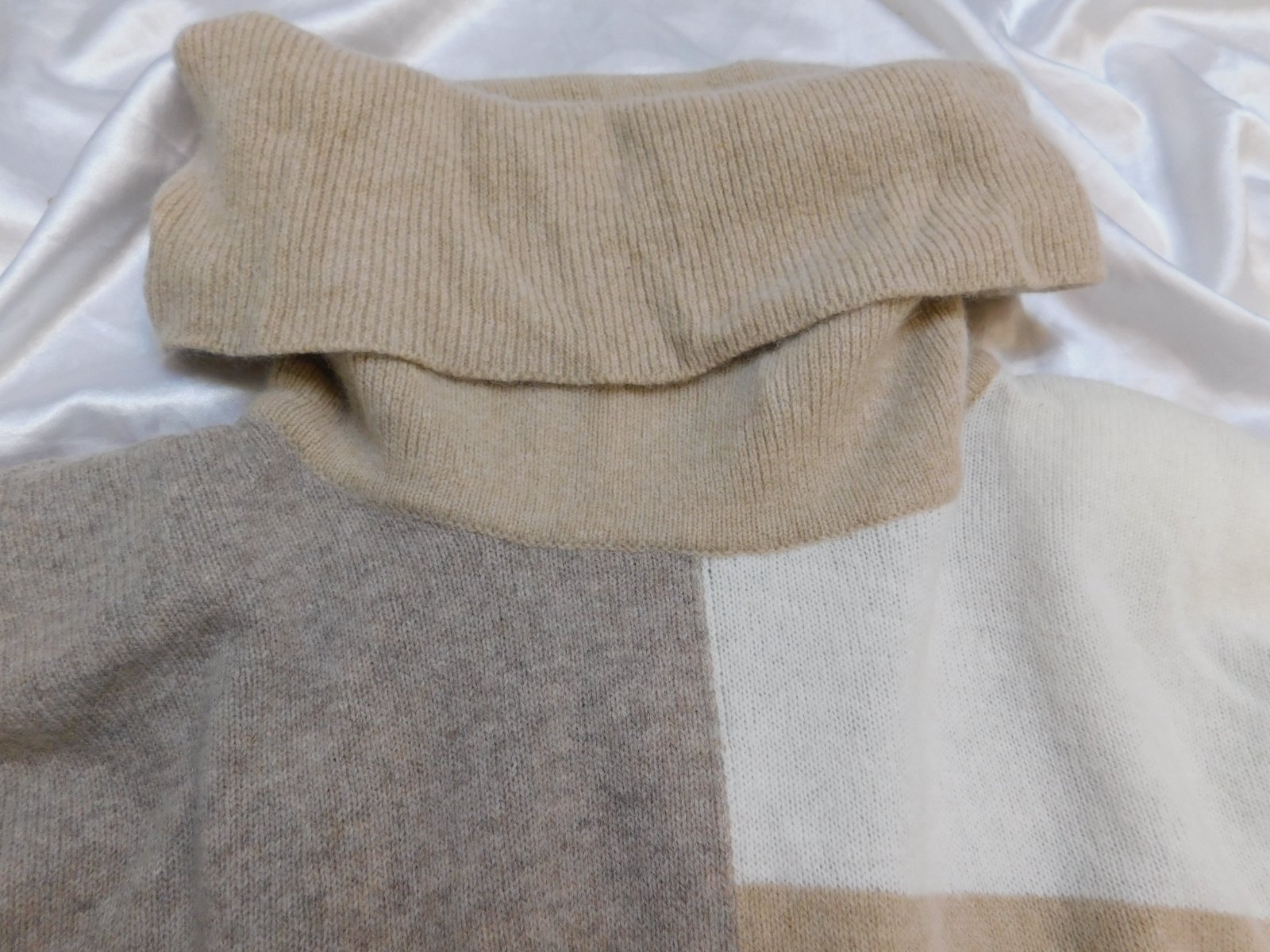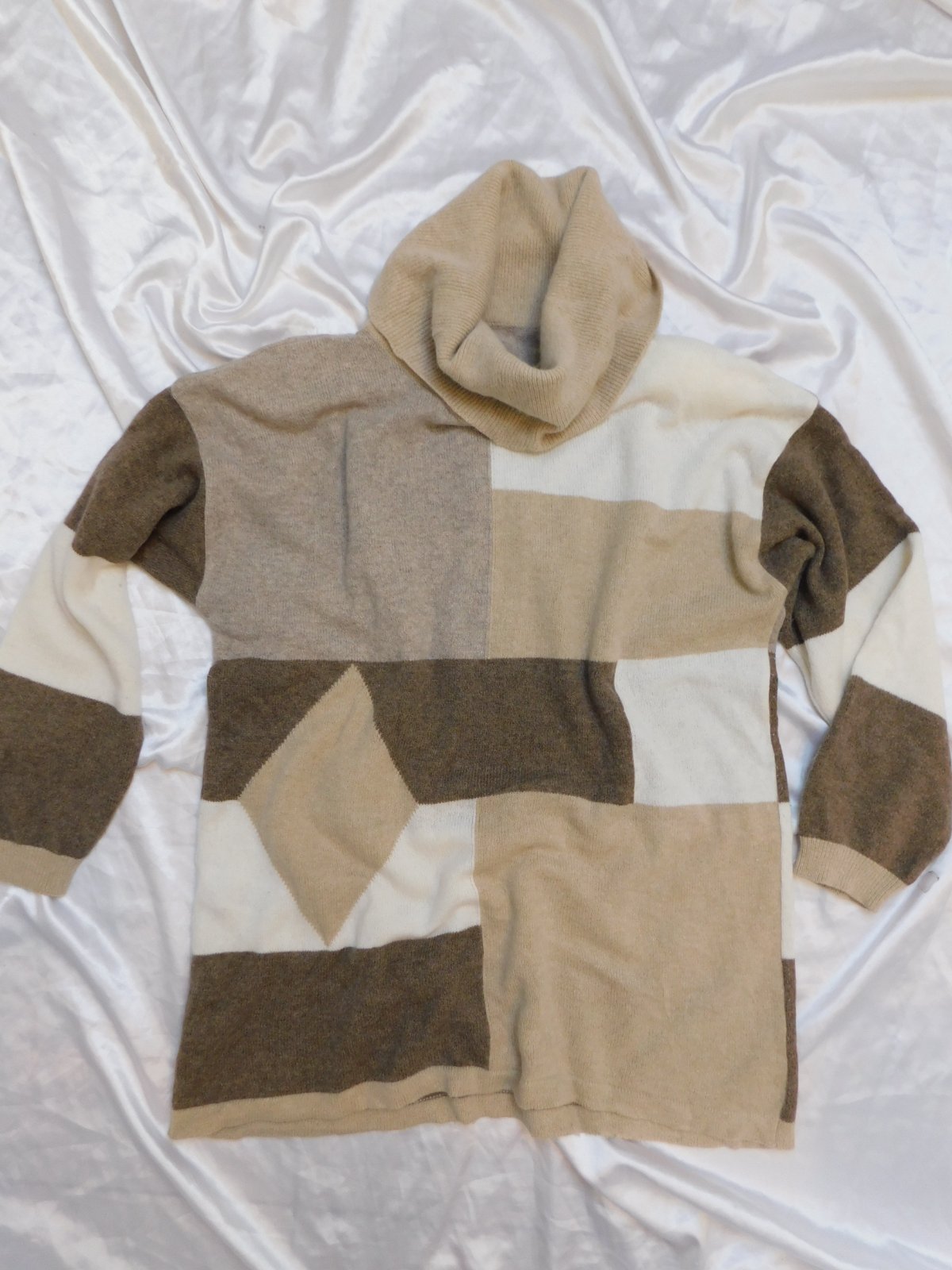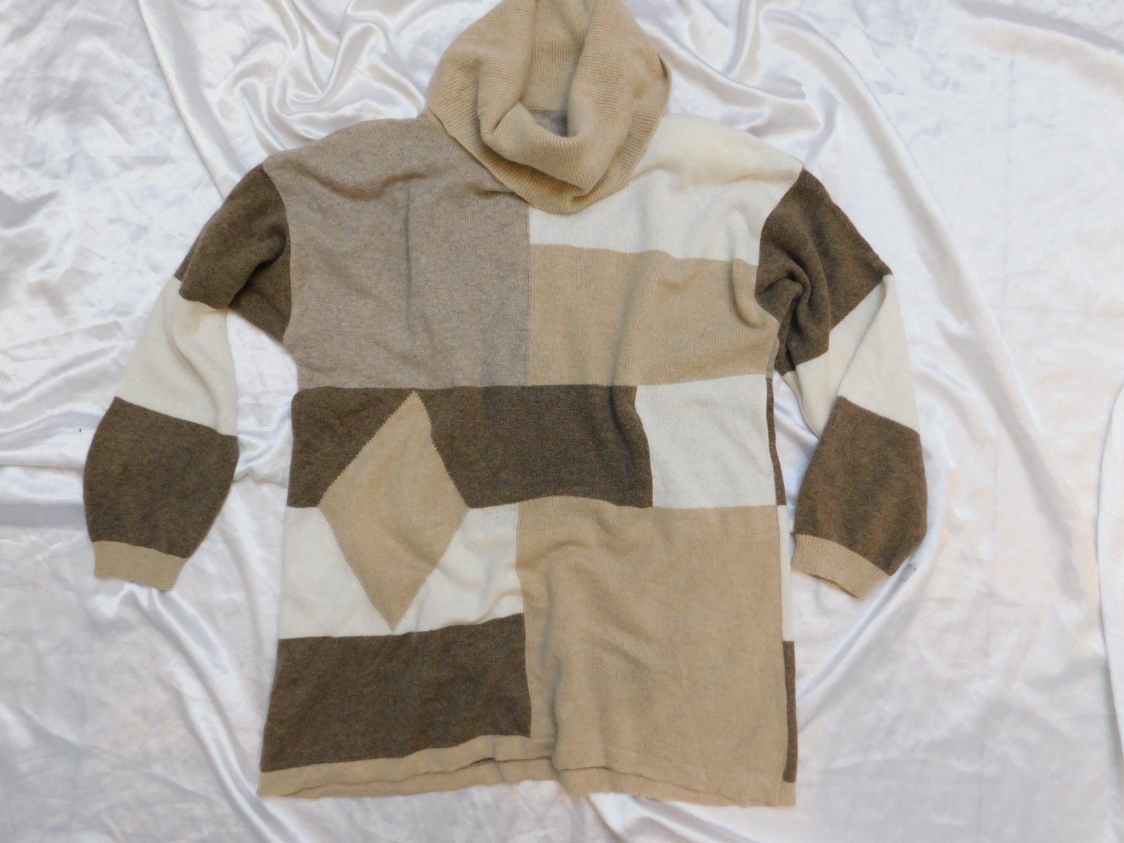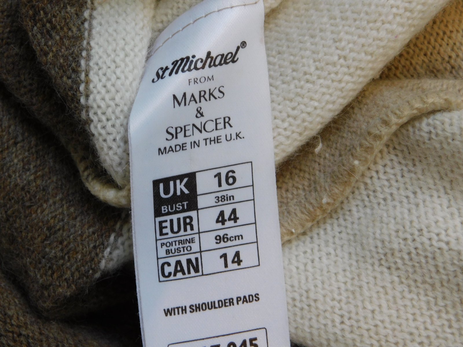 MARKS&SPENSER Rolakovy pulover s geometrickym vzorom,bielo/bežovo/hnedej farby.60%lambswool,20%angora,20=nylon.super noseny stav. m