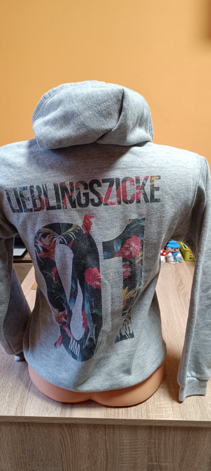 Krasna mikina s kapucnou a obrazkom na chrbte, v super stave