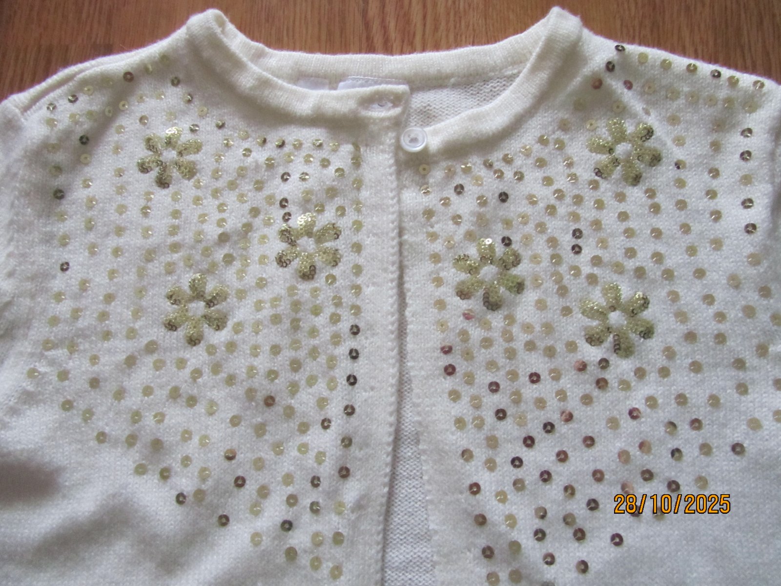 Predám raz oblečený svetrík s krásnou zlatou aplikáciou, má iba jeden gombík hore, top stav.