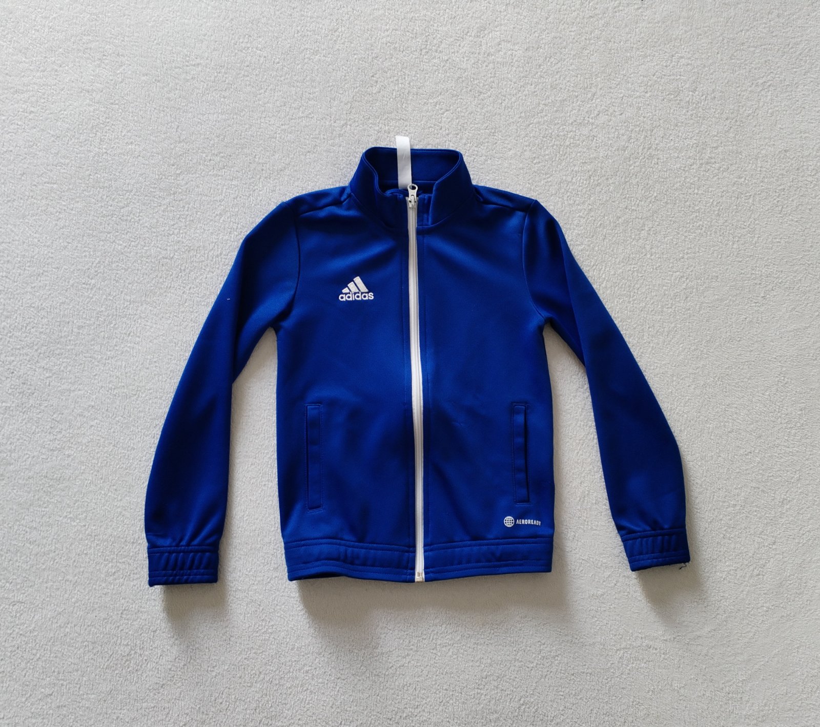 Treningova mikina, skôr na donosenie, na dvor, na lietacku, keďže ma pár zatiahnutí. Inak bez dier a flakov.