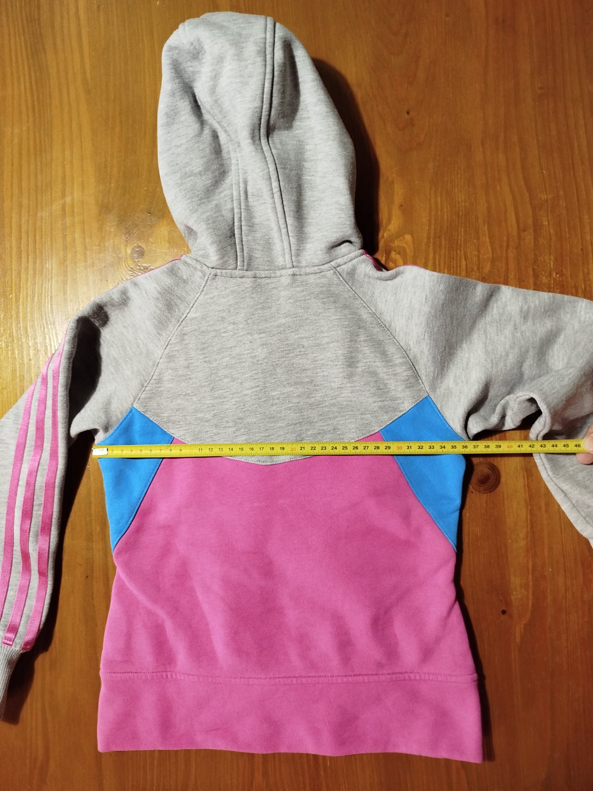Predám krásnu dievčenskú ružovú Adidas mikinu. Nosená v dobrom stave, ale trocha sa páre pásik na rukáve. Rozmery viď foto.Pozri aj ďalšie moje inzeráty.Seriozne!!!