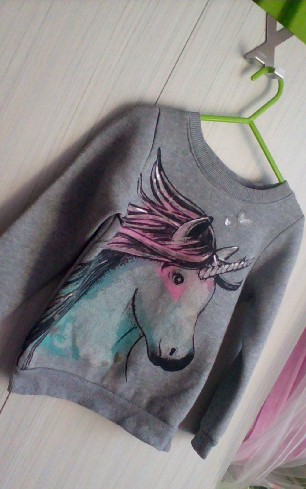 Prevliekacia bez kapucne presivana trblietavou nitou s konikom jednorozcom