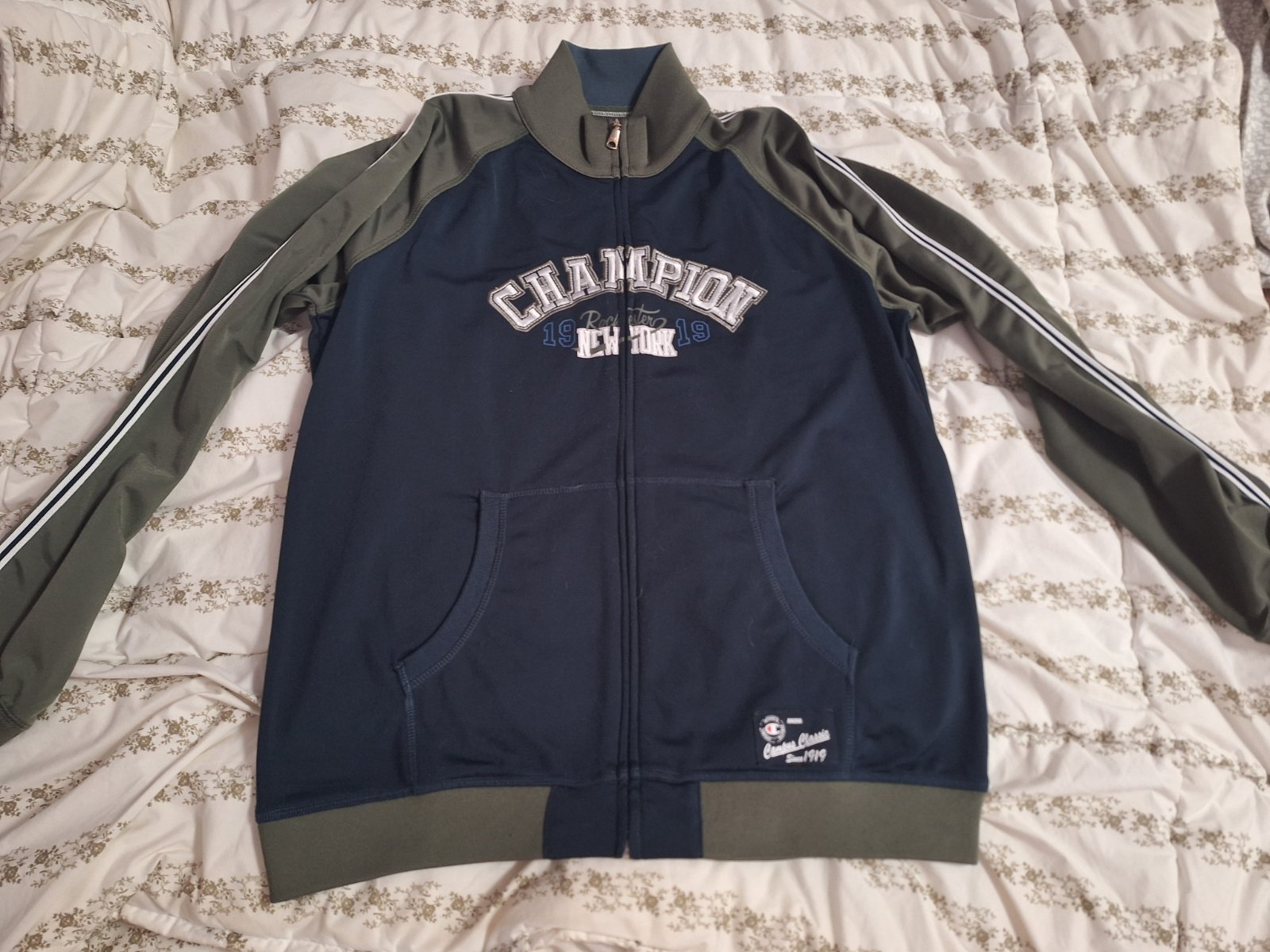 Parádna mikina zn. Champion tmavožltej farby. Na štítku je veľkosť 162/167, resp. 13/14 rokov. Bola nosená na striedačku, je stále veľmi pekná, logo je nepoškodené, akurát na rukávoch má 2-3 také f...