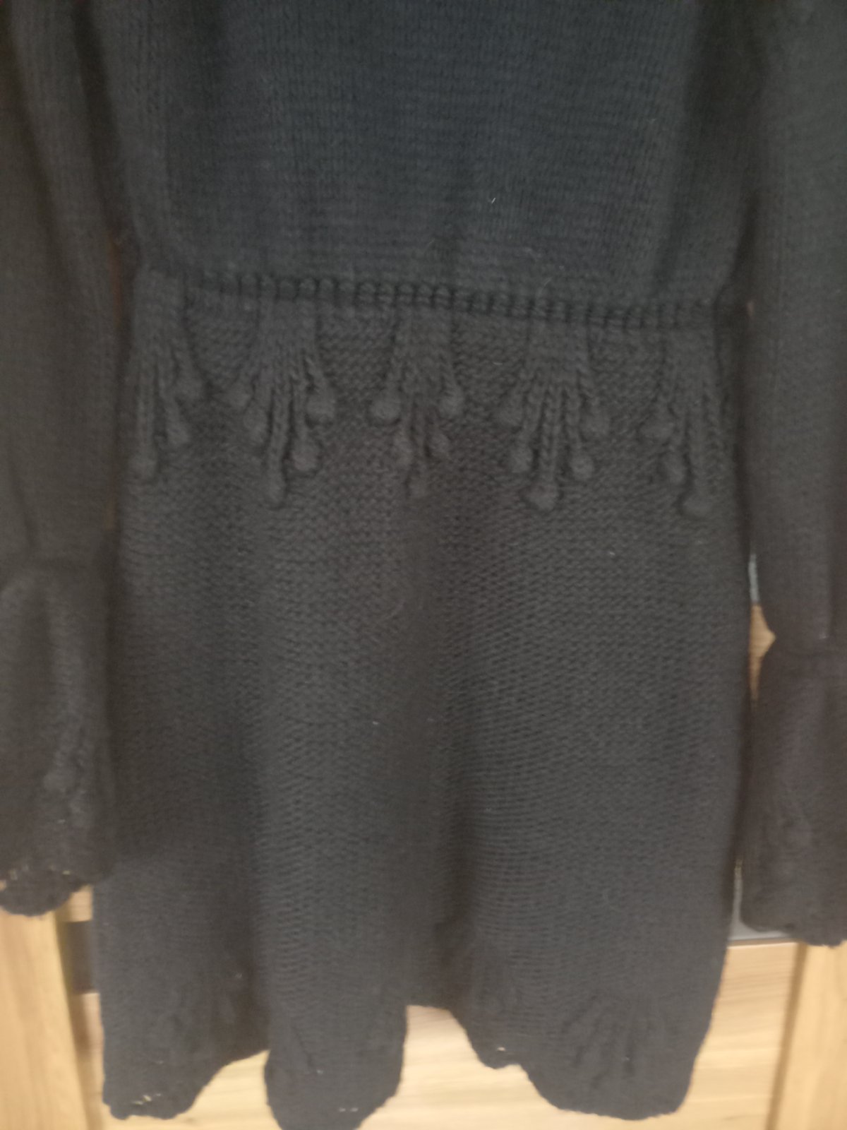 Krásny svetrík sýto čierny dĺžka 90 šírka popod pazuchy 49 až 50 krát 2 v zapnutom stave elastický roztiahne sa podľa potreby