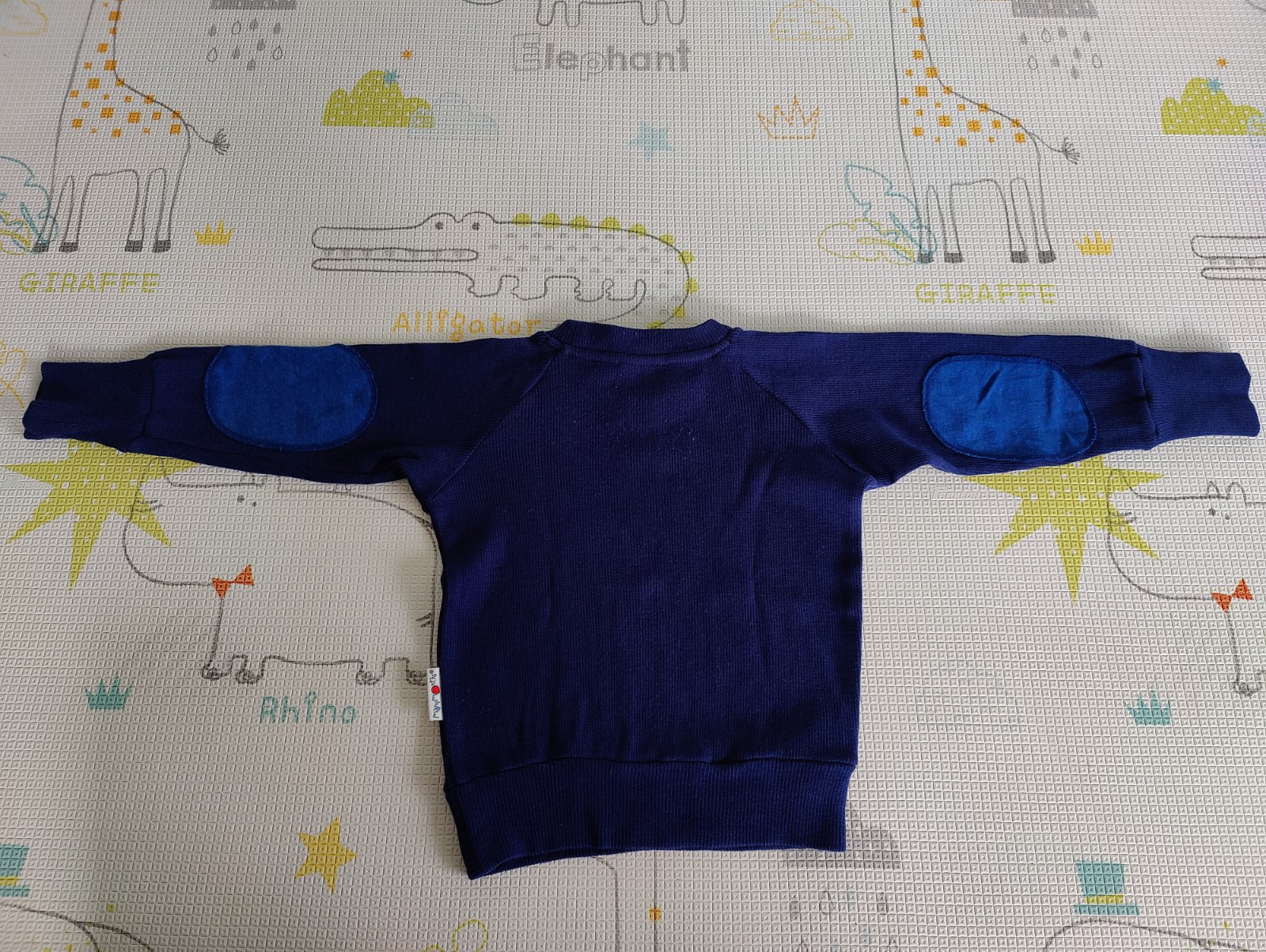Predám kvalitný rastúci detský merino pulóver značky Manymonths. Veľkosť Conqueror, vhodná od 3,5-4,5/5 rokov (98-104/110). Farba tmavomodrá s originál záplatami na lakťoch kontrastnej svetlejšej modrej farby. Materiál 100% merino vlna. Veľmi pekný nosený stav. Praný len ručne v prostriedku na vlnu, sušený vodorovne.