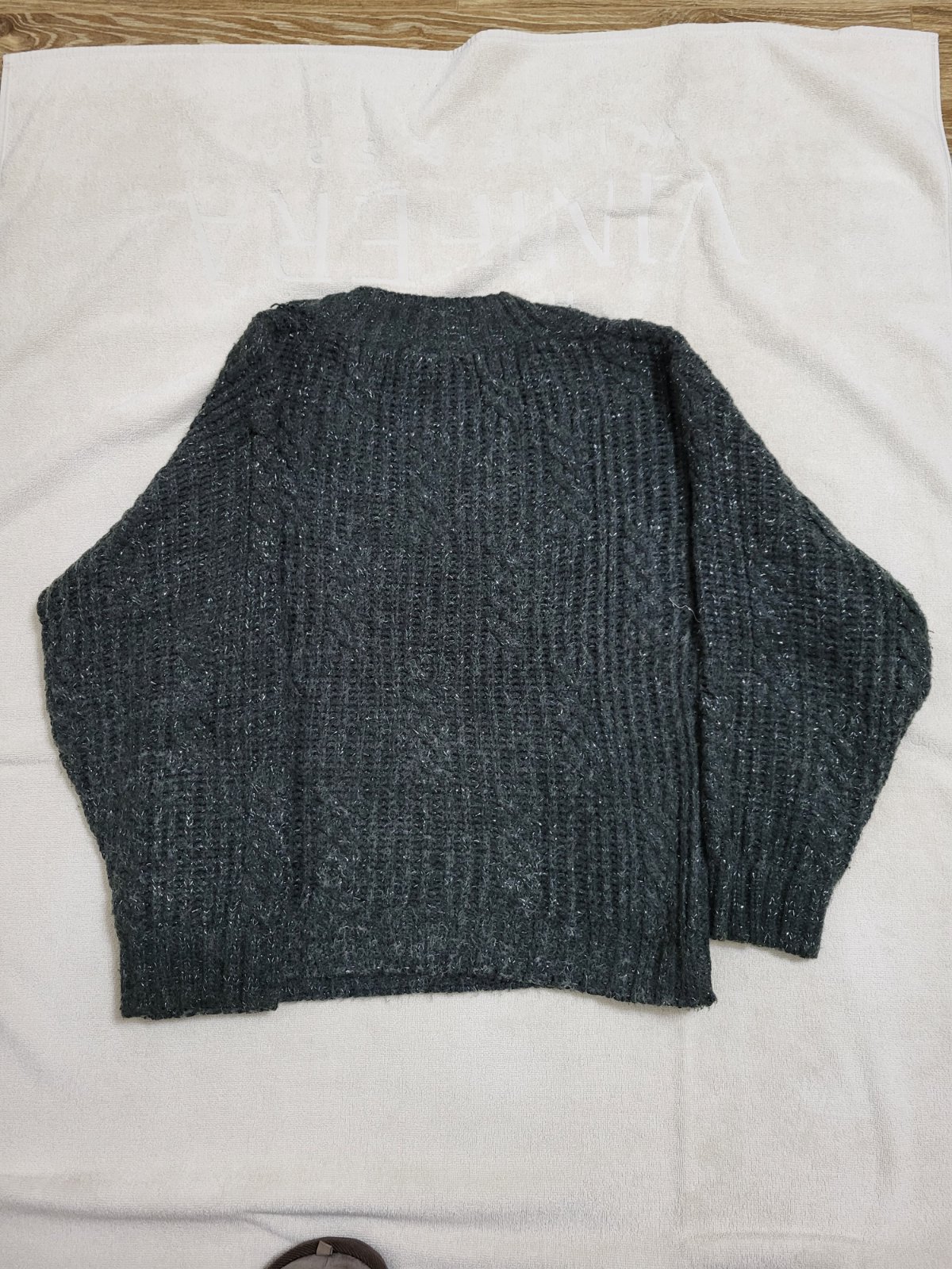 Sedy svetrik na zapinanie / gombiky. Velmi prijemny material. Noseny, ale velmi zachovaly. Velkost vacsie M az L