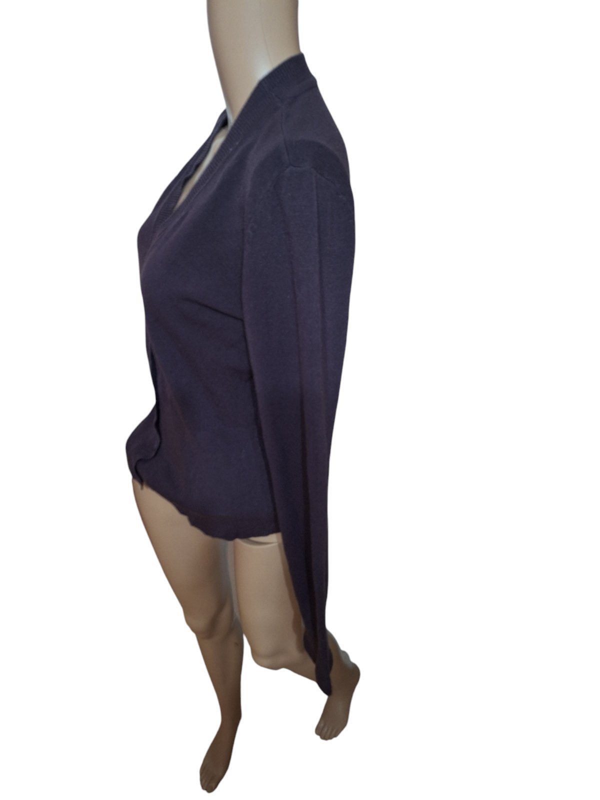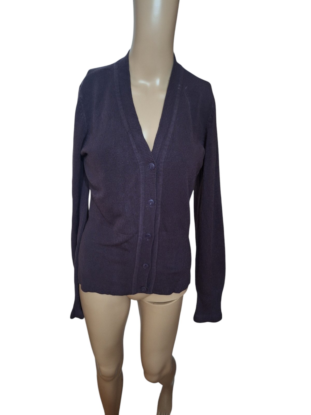 Dámsky svetrík na zapínanie. Dĺžka je 60cm,obvod hrudníka je 86cm a obvod pása je 80cm. Dĺžka rukáva je od krku 75cm. kód 846