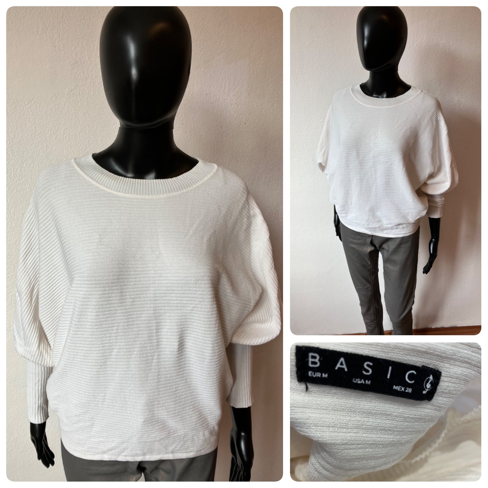 Dámska biela mikina oversize, vrúbkovaná, elastická.