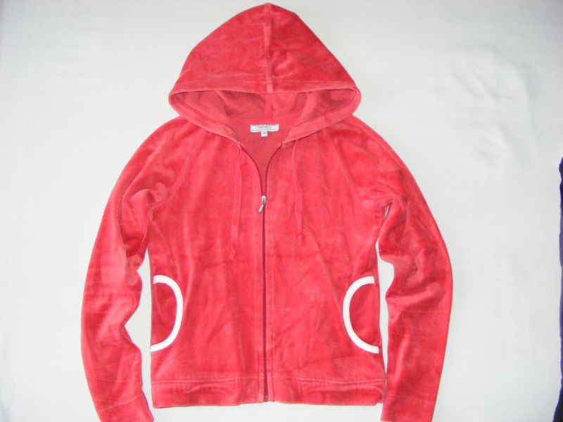 Velúrová mikina s kapucou zn. Blind date, zapínanie na zips, bočné funkčné vrecká.