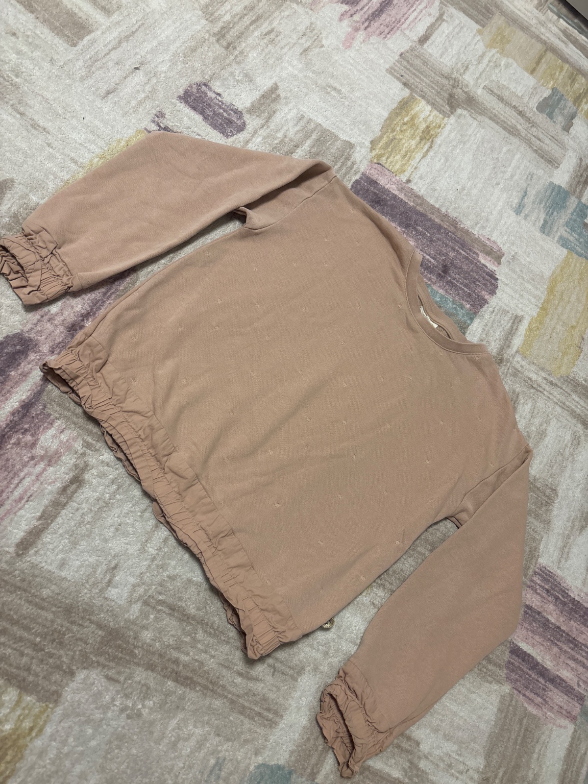 Predam po dcerke topkovu , detailne prepracovanu mikinu , topkova , manzety na pase , rukavoch , vyzera naradne k rifliam ak sukni , dlzka do pasa .