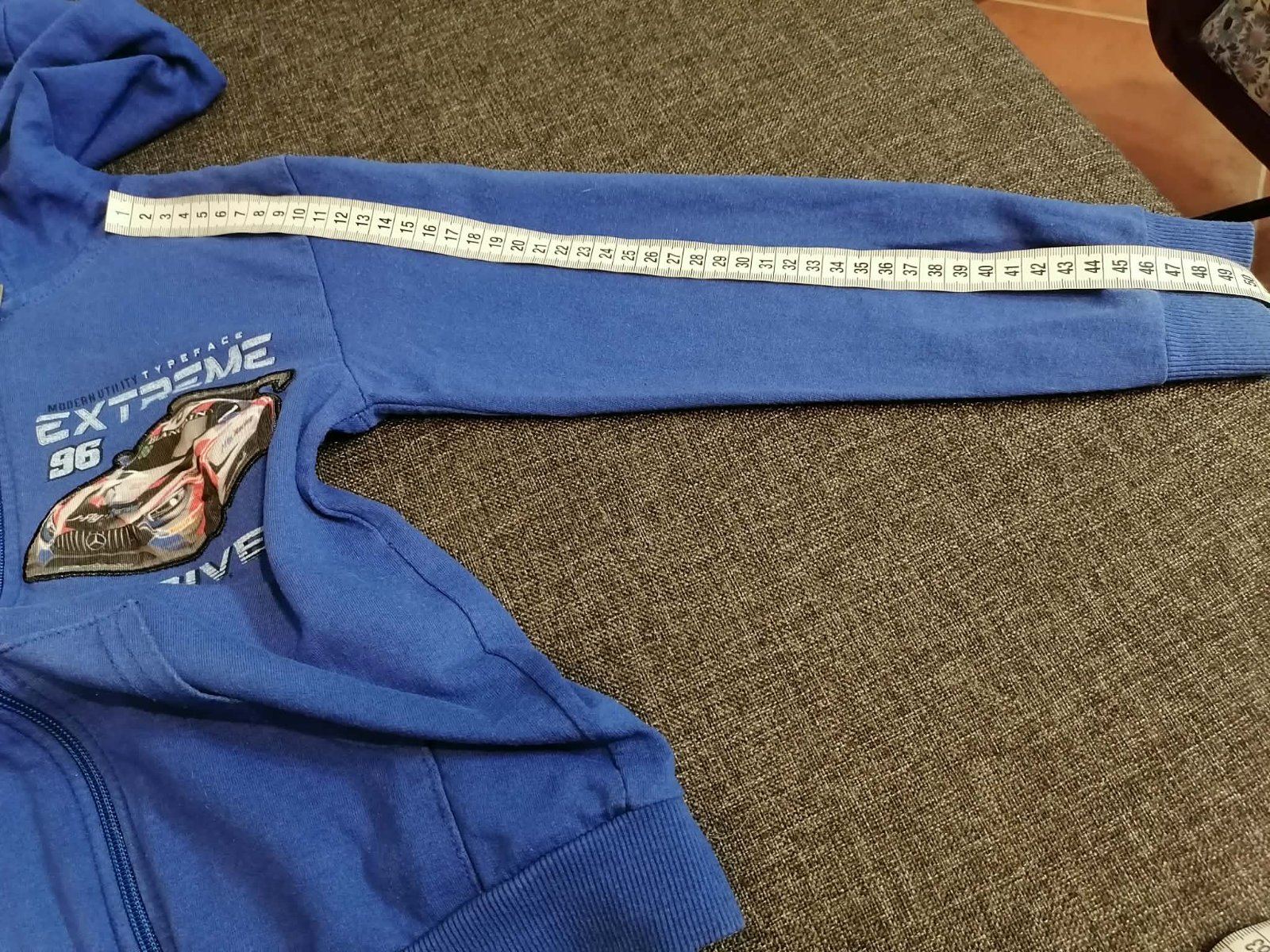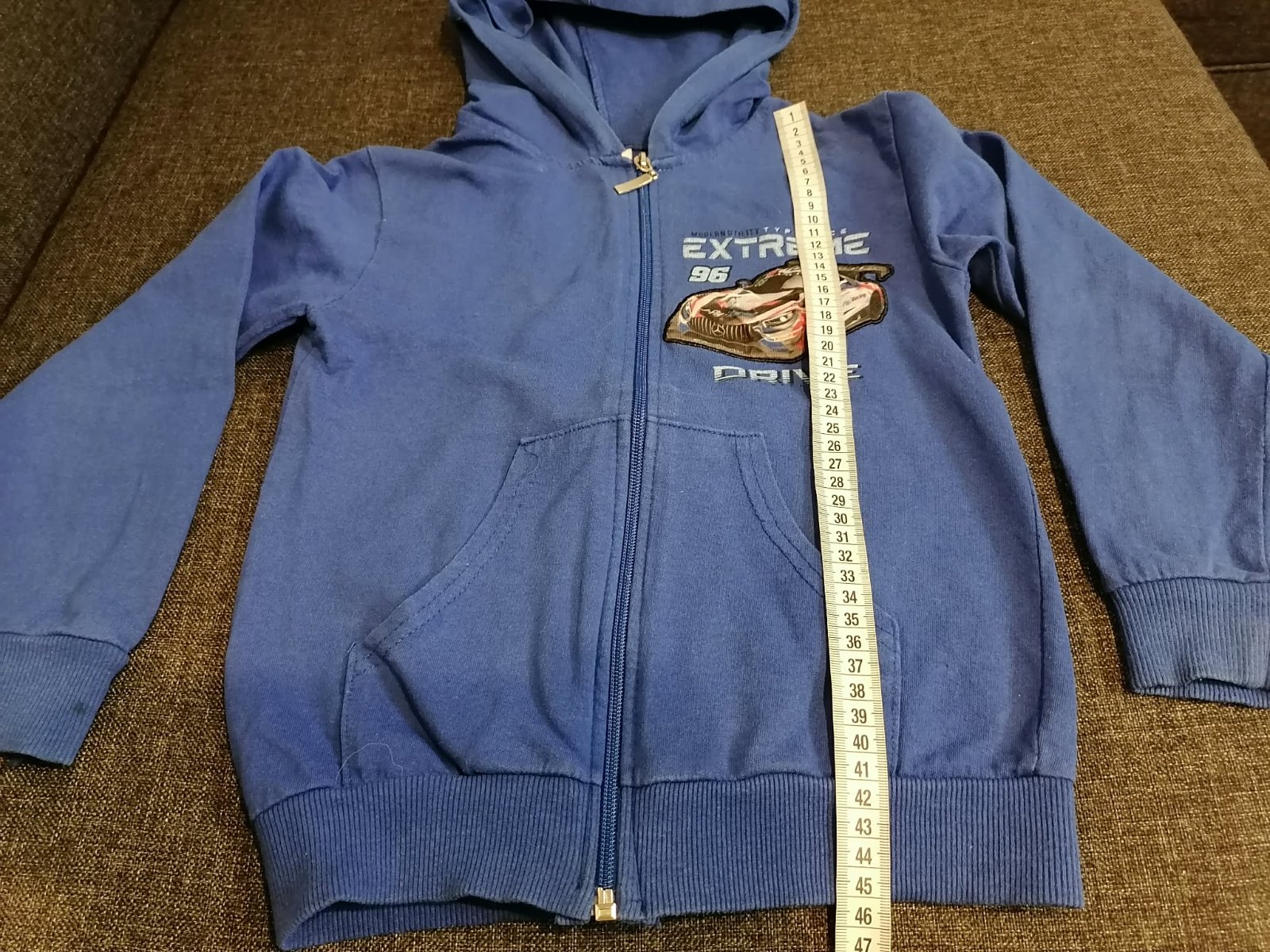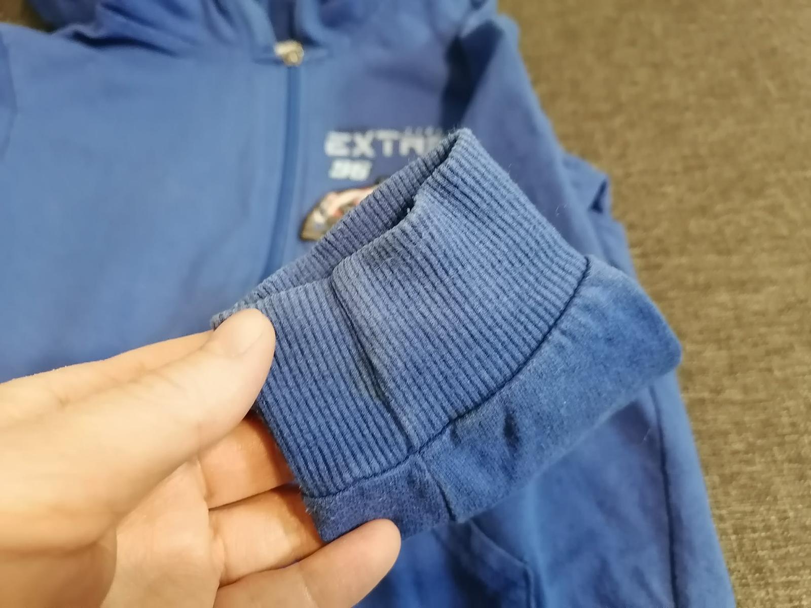 Predám mikinu na donosenie - dobrý nosený stav. Autíčko na hrudi pri stlačení farebne bliká. Na pravom rukáviku je malý čierny fľak. Lemy na rukávoch aj na spodku mikiny su trošku vyblednuté. Všetky nedostatky zohľadnené v cene. Cena bez poštovného