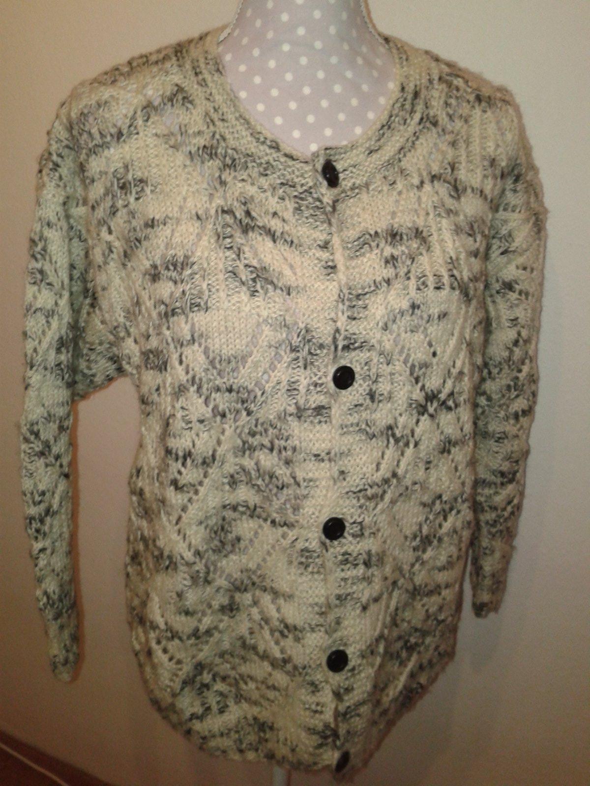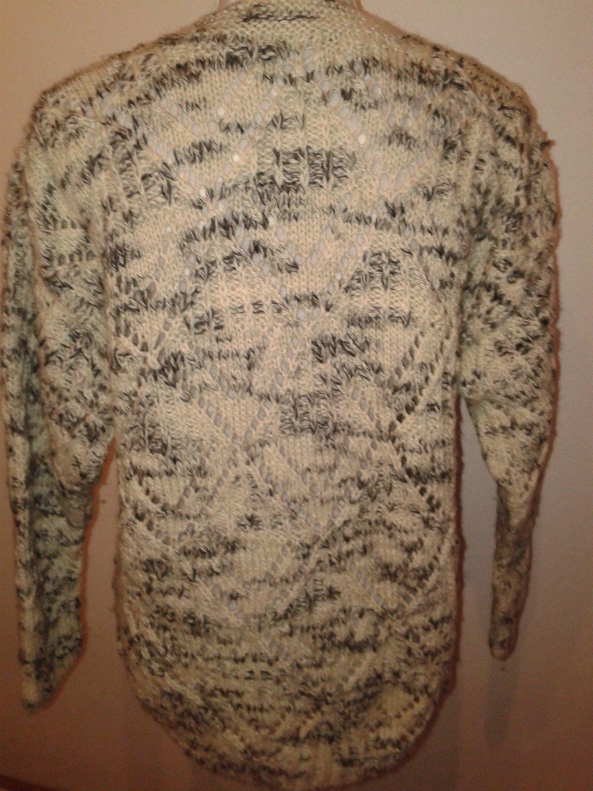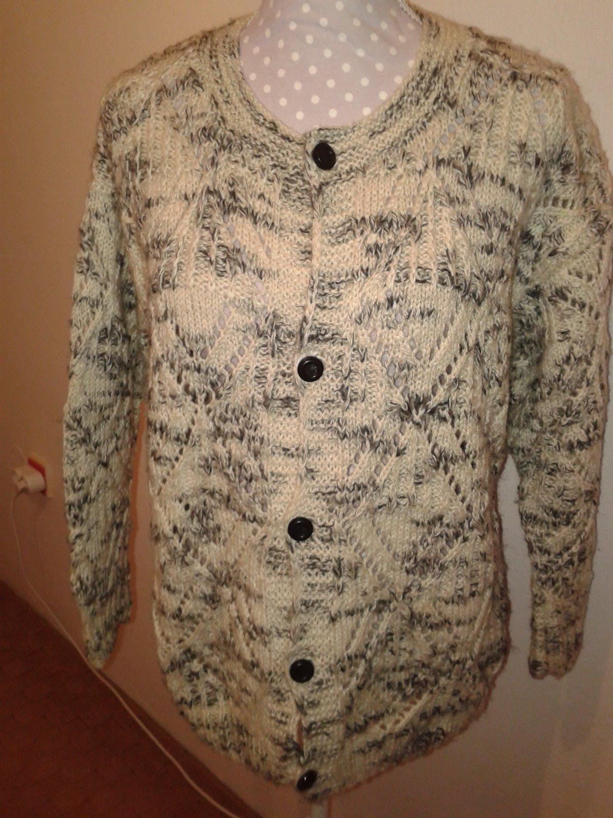 ručne pletený sveter, oblečený asi 2x, dlžka 64 cm, cez prsia 56x2, rukáv od krku 65, všetko merané v kľude...nie je to čistá vlna, vhodná je aj pre alergikov